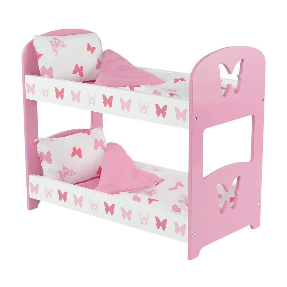 18 Inch Doll Furniture Lovely Pink and White Bunk Bed with Beautiful Butterfly Motif, Includes Thick, Plush Bedding Fits American Girl Dolls