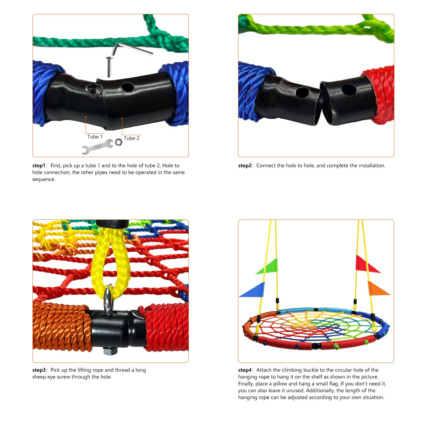 Our swings are made of name new polyethylene materials that’s softer, smoother, wear-resistant, has a load capability of as much as 700 kilos and has an extended service life
