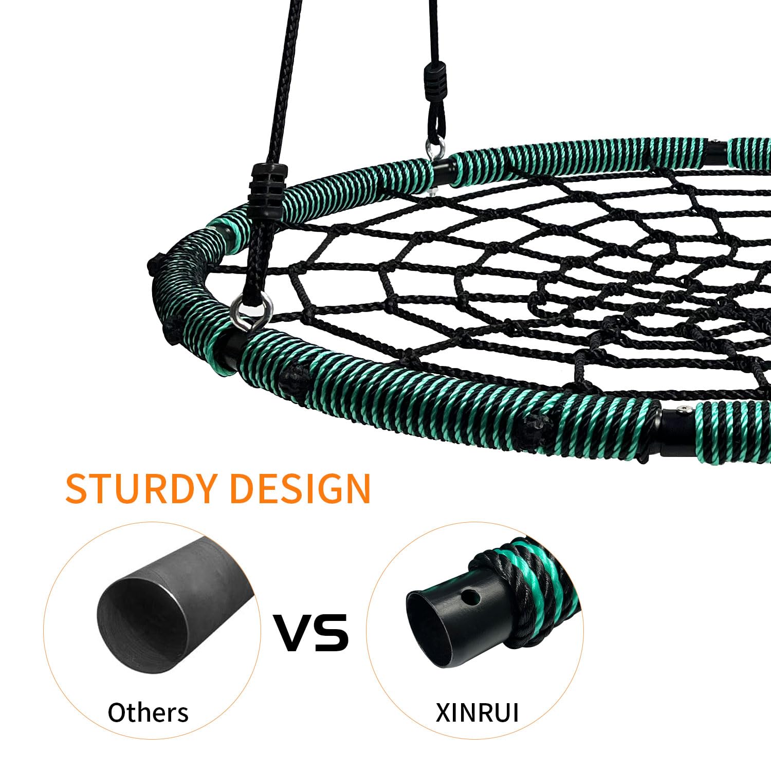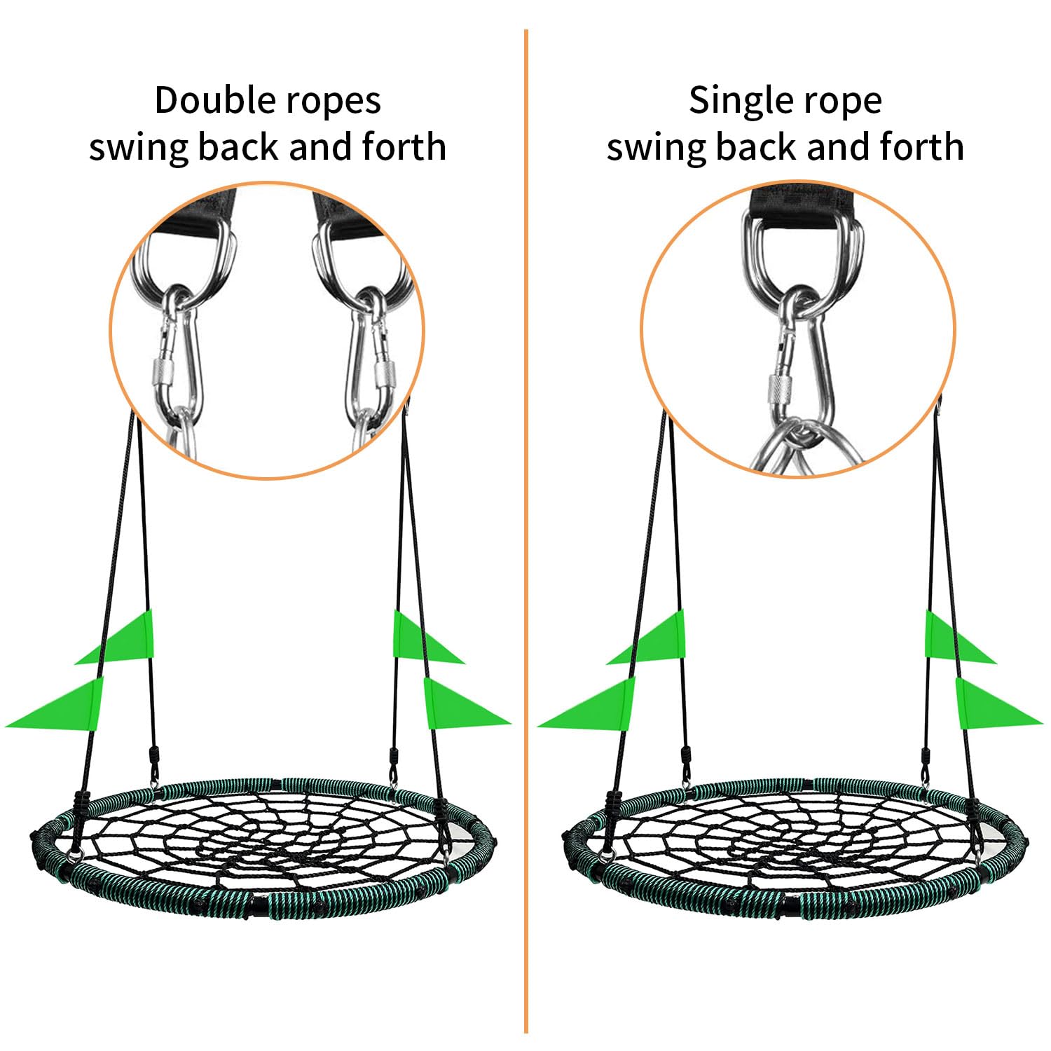 40 inch Tree Swing, Spider Web Tree Swing, Load Capacity to 700 pounds, 71″ Detachable polyethylene Rope Joint, with Two Tree Straps, Suitable for backyards and playgrounds (Green)