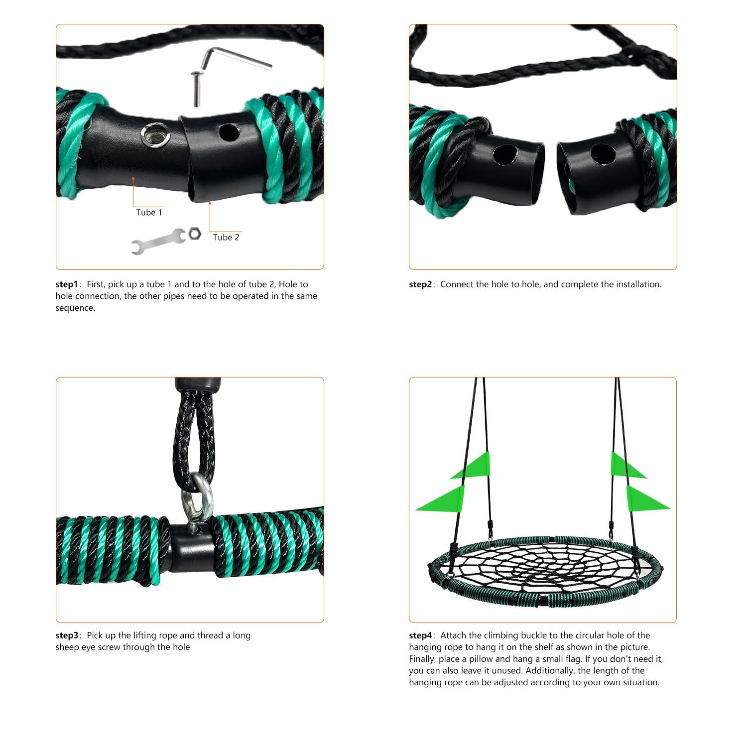 Upgraded braided rope is used, which is extra sturdy and better load-bearing. Geared up with a strengthened tree belt and M8 carabiner. It may be rapidly assembled and revel in it when you get the swing.
