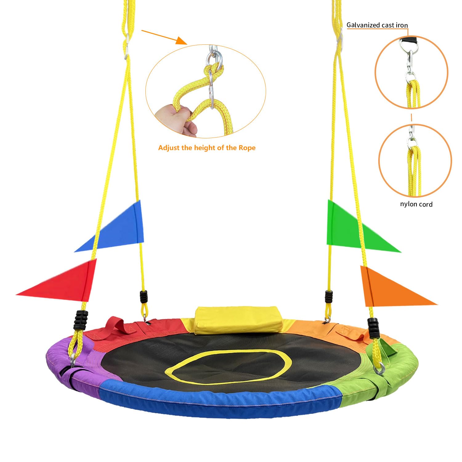 Measuring 40 inches in diameter, this tree swing provides loads of room for youngsters to swing, spin, and play. Its massive measurement permits for a number of youngsters to benefit from the swing on the similar time, selling social interplay and cooperative play. The spacious design additionally ensures that youngsters have sufficient house to stretch out and calm down.