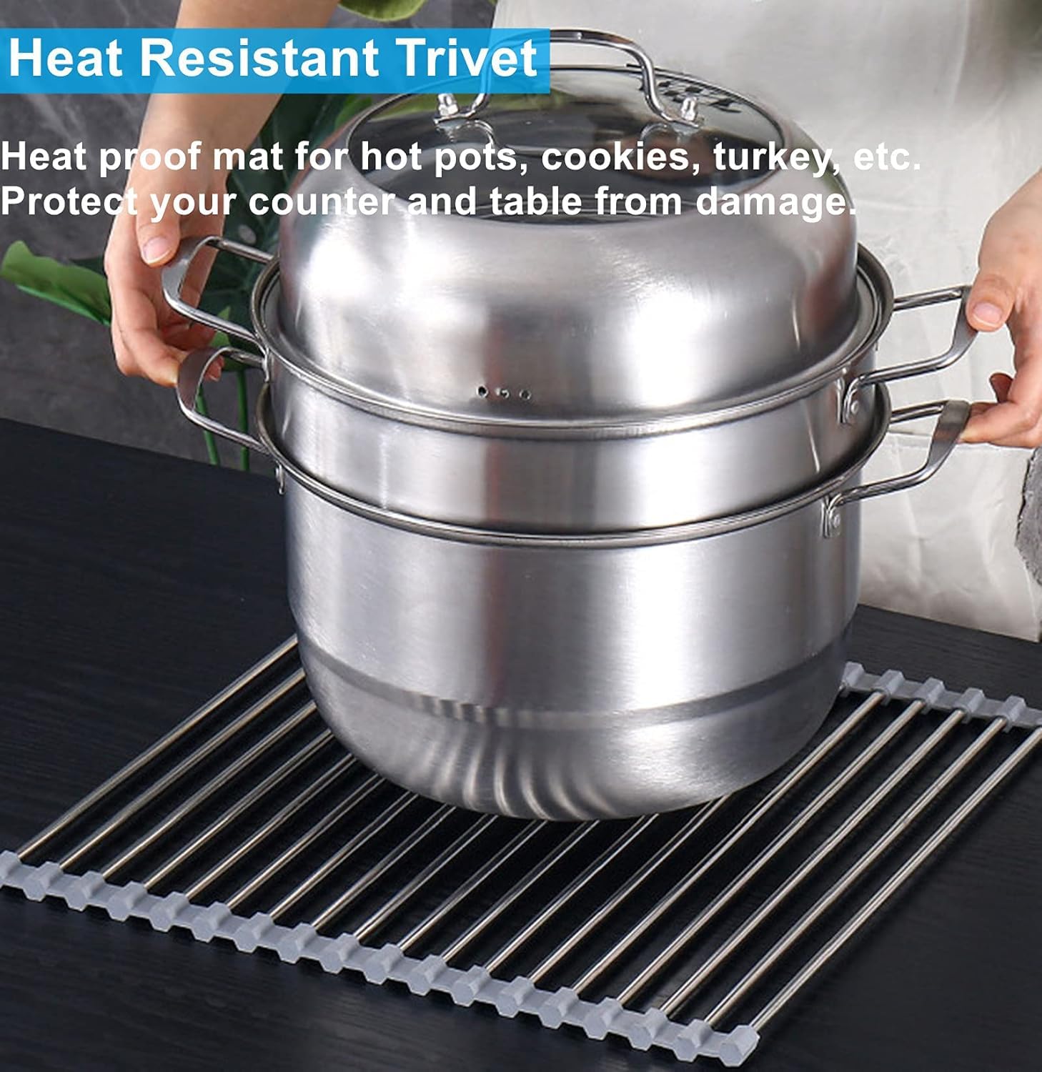 ✪EASY IN USE – Folding oil-resistant chrome steel drying rack is definitely cleaned and is rust resistant which allow you to wash the mat in a dishwasher. Can help heavy cookware and weights as much as 15-20 Kgs and aren’t straightforward to bend or twist. Warmth resistant as much as 460°F (240°C), the foldable rack additionally can be utilized as a warmth resistant trivet mat