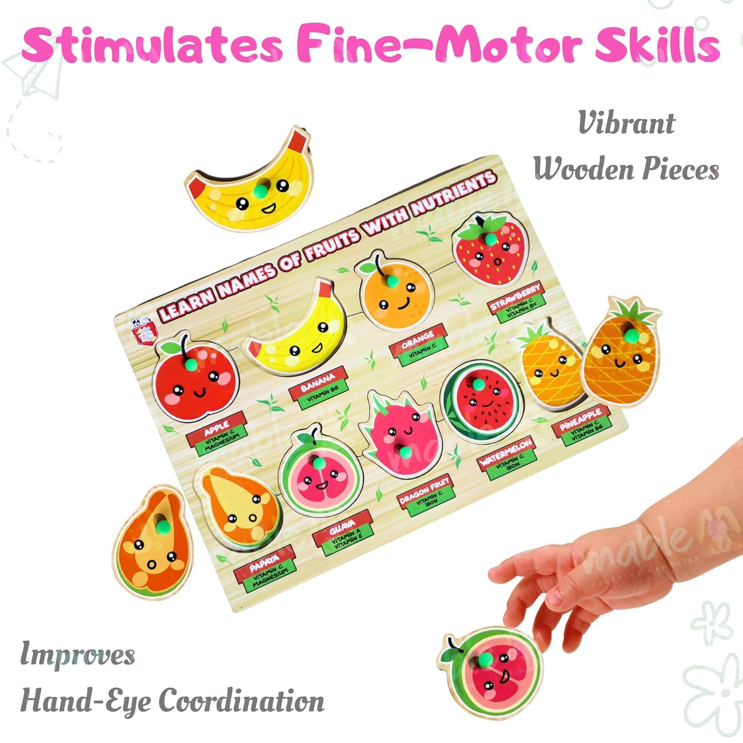 Adora Wooden Learning Educational Game Board for Kids, Development and Creative Learning Game for kids, Puzzle Study Game Preschool Early Educational Game Child toy (Fruit Puzzle)