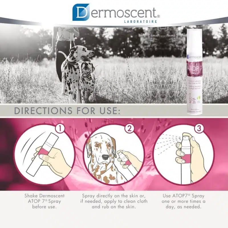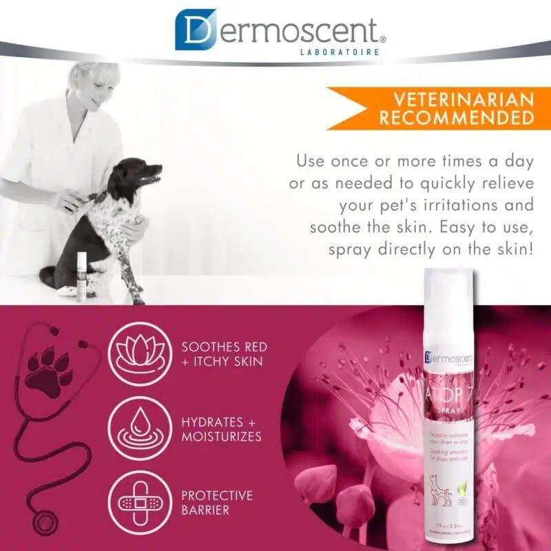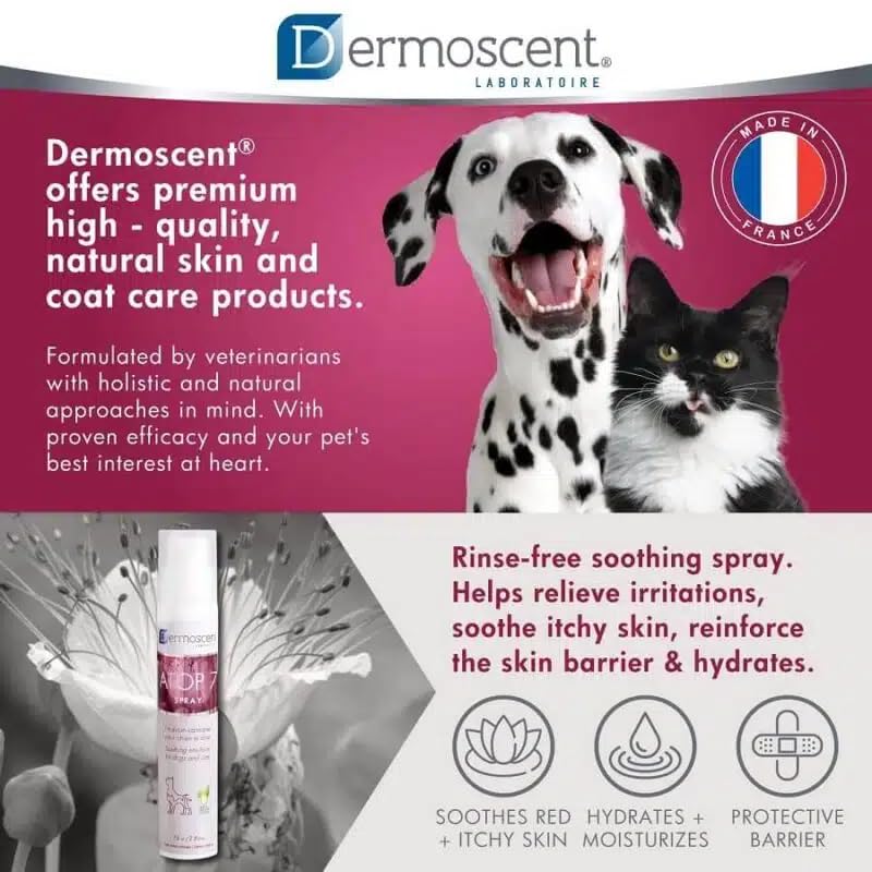 Atop7 spray for canine & cats is a soothing and itch reduction spray for canine & cats affected by atopic dermatitis, pores and skin infections, pores and skin allergy symptoms and different pores and skin issues. This pure spray helps cut back irritation and soothes itches, this emulsion additionally helps restore the pure pores and skin barrier and helps protect pores and skin hydration. Its ultra-thin submicronic texture permits fast absorption and helps relieve distressed pores and skin rapidly. It varieties an invisible and non-occlusive protecting.