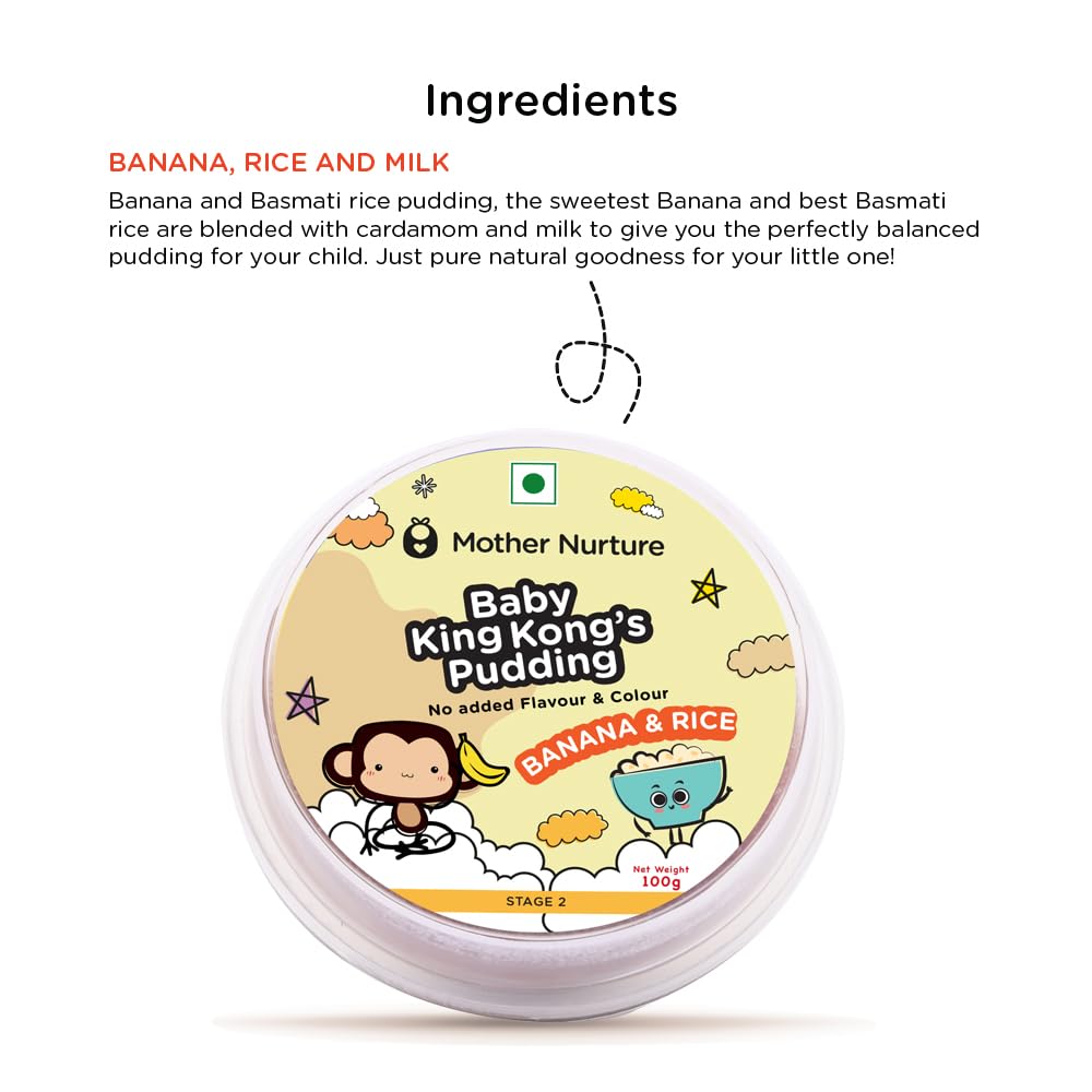 Baby King Kong’s Pudding – Rice & Banana – Stage 2 – Baby Food (Pack of 1) 100g | Mother Nurture