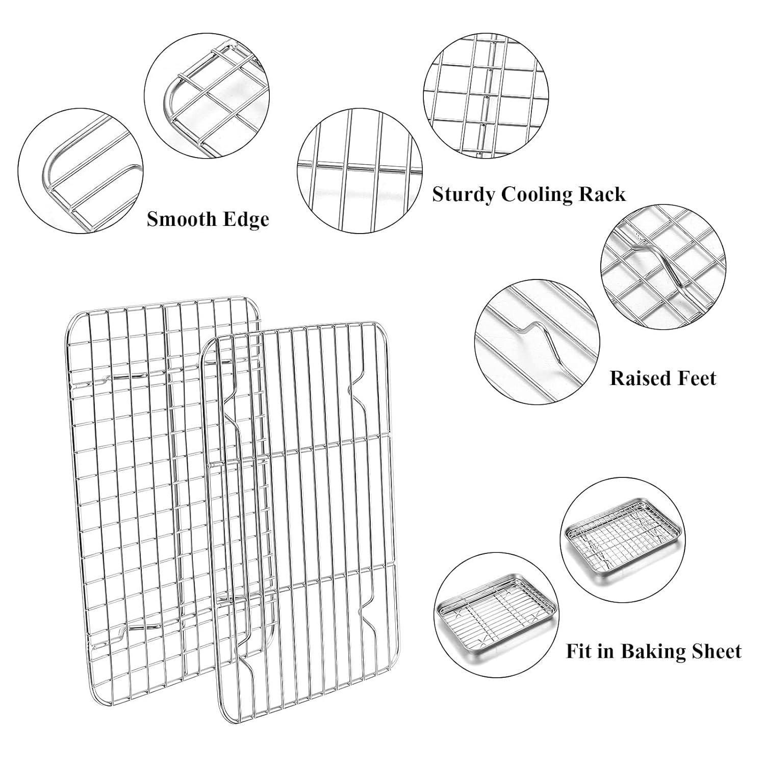PERFECT SIZE: 4 Items, 2 baking pans are 16 x 12 x 1.00 inch and a couple of form of cooling racks each are 15.16 x 11.18 x 0.67 inch. Greatest skilled bakeware set for dessert chef and baking lover, And excellent for use as cookie sheet or baking sheet in your common oven and toaster oven