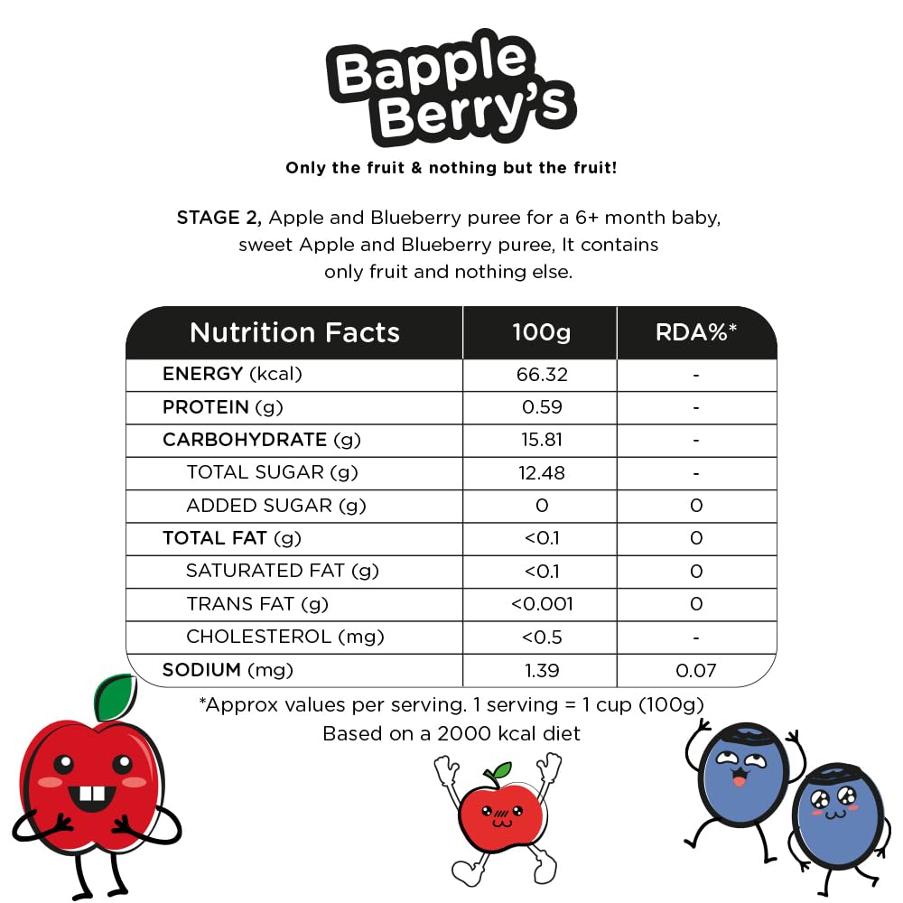 Stage 2 – 8+ Month Infants: This wholesome and scrumptious fruit puree is the best first meals in your little one. The graceful Apple and Blueberries puree is straightforward to feed to Child, and has the right texture to be simply accepted by your toddler.