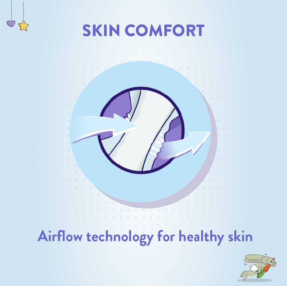 Fast absorption layer for max dry feeling and aspect gathers to stop leakages.Wetness indicator for simple verify on when the diaper must be modified