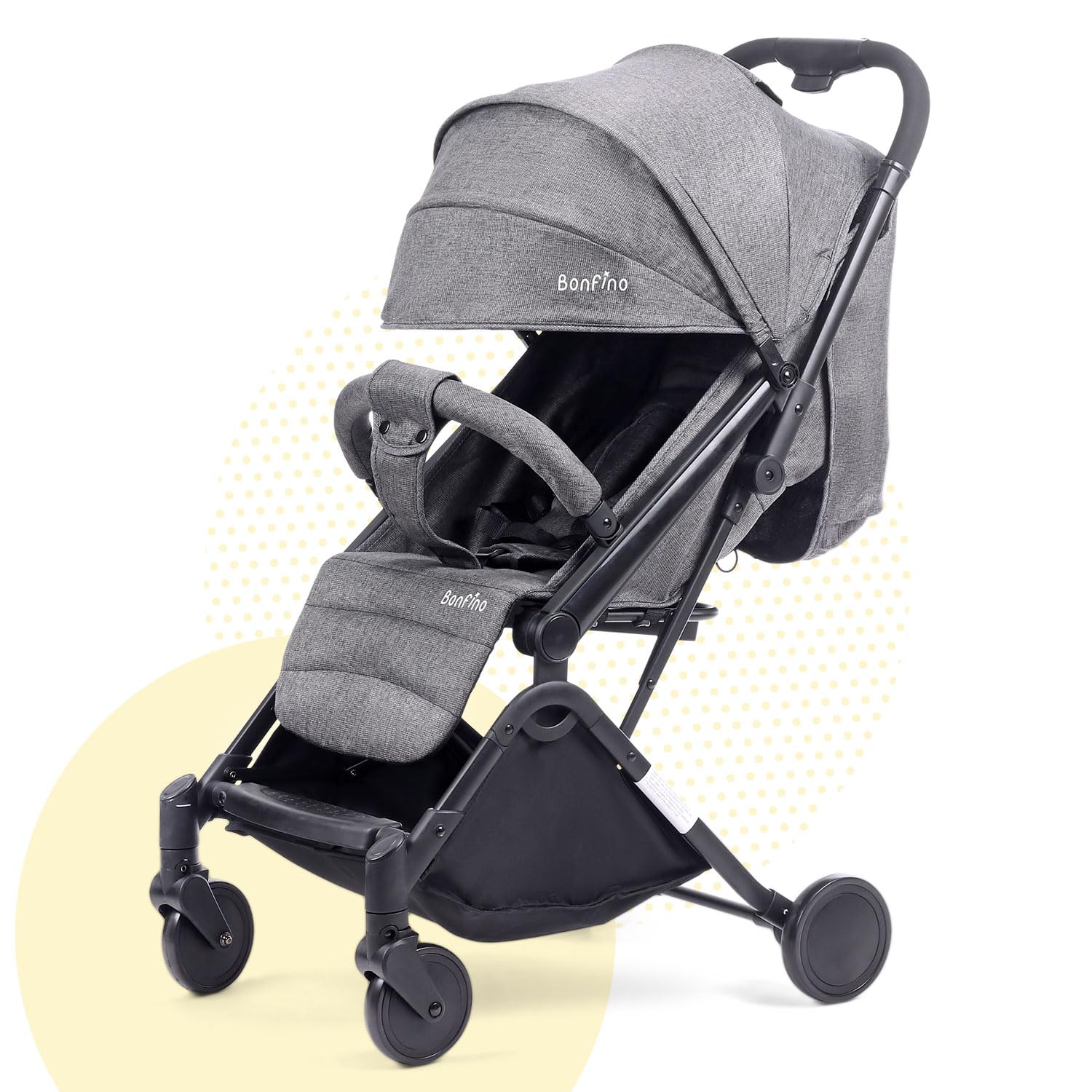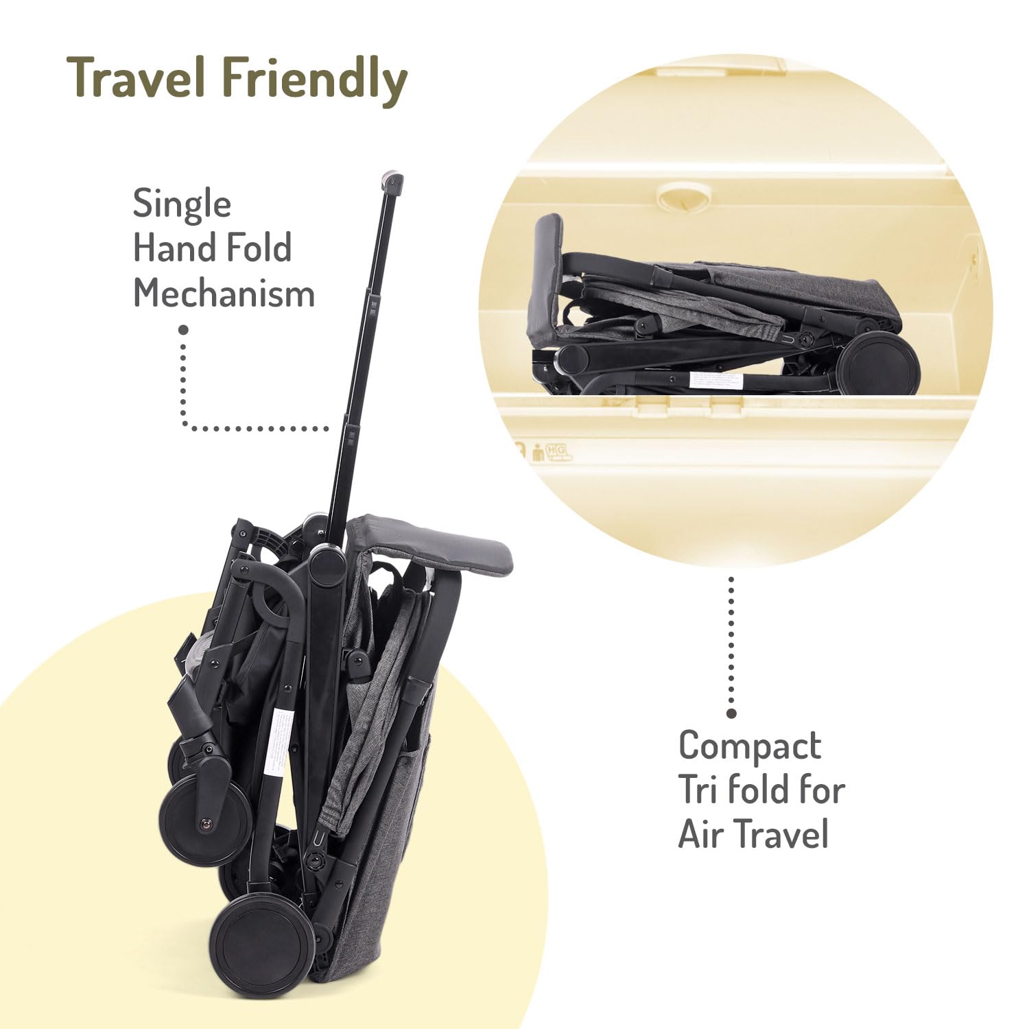 Bonfino Runway Feather Lite Cabin Stroller in Linen Fabric for Newborns/Infants |Lightweight Baby Stroller for Cabin Travel With Compact Tri-Fold |Baby Stroller for 0 to 3 Years |20 Kg Capacity (Grey)