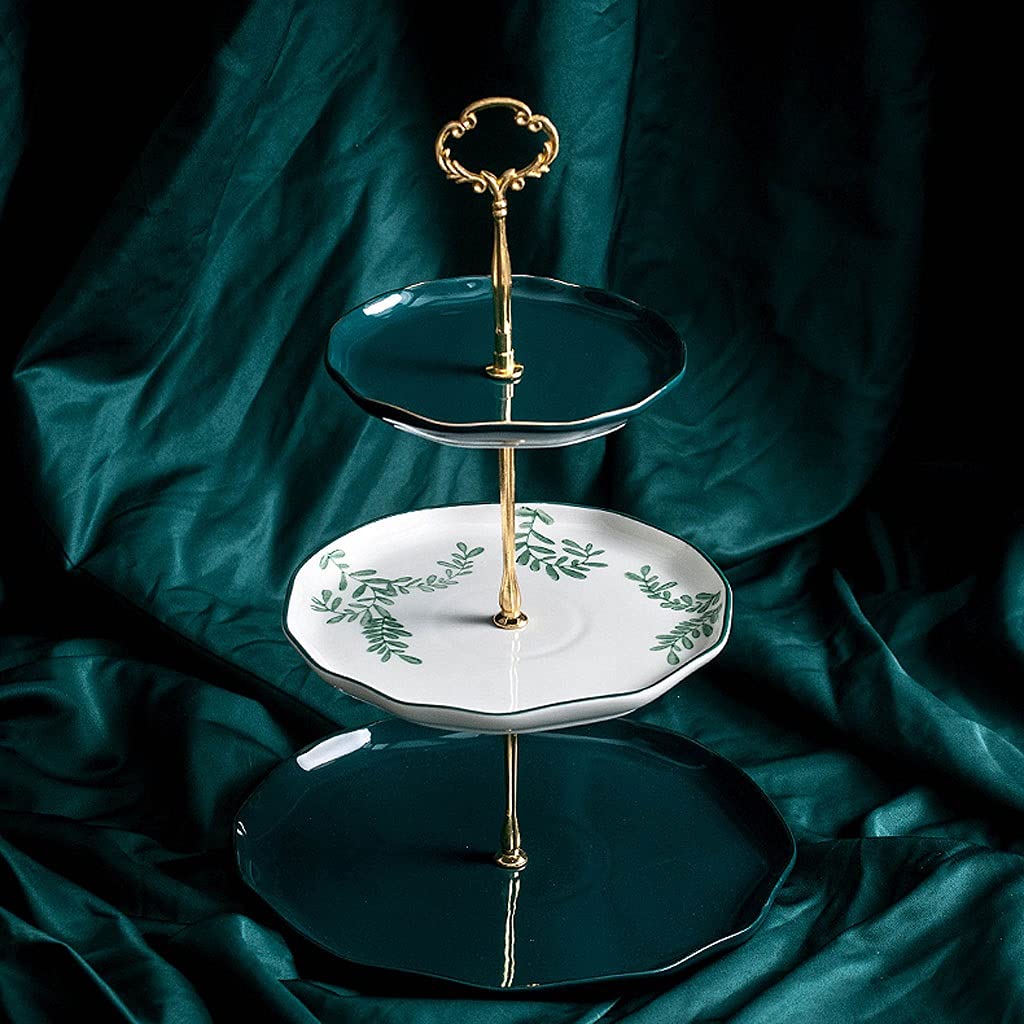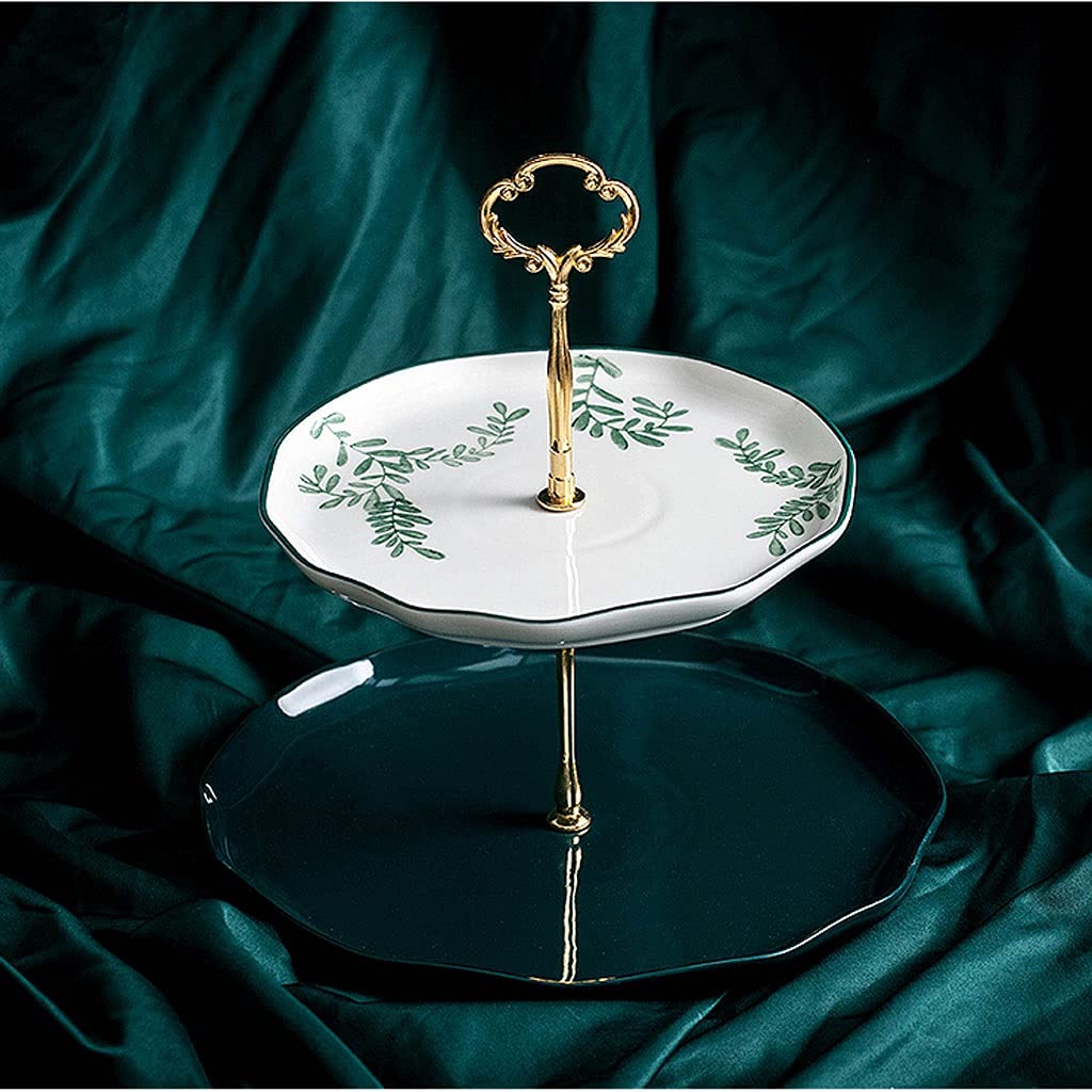 Cake stand Afternoon Tea Cake Snack Stand Retro Household Ceramic Double-Layer Fruit Plate Three-Layer Dessert Table Candy Snack Tray Pie dish (Size : A)