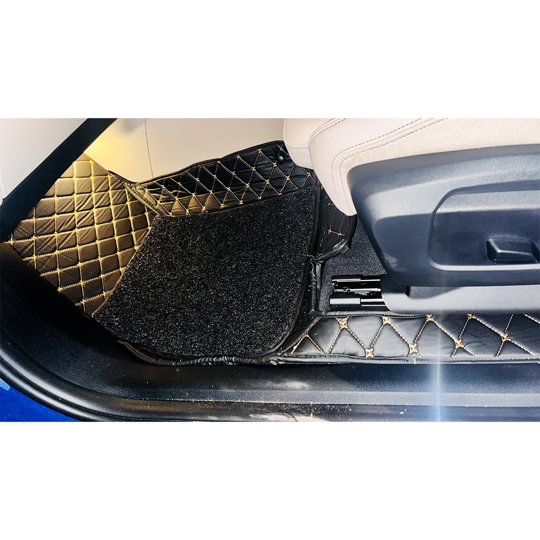 CAPEDELL Premium 7D Car Floor Mats Compatible for Creta Old(2016-2019)||Luxury Leather Double Layered Mat||Set of 3Pcs||Waterproof and Washable||Color :-Black with Golden(Black Grass)