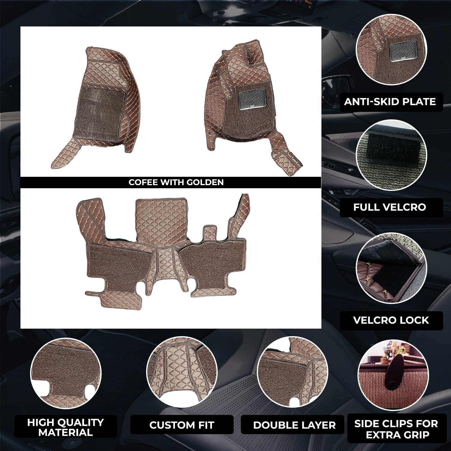 CAPEDELL Premium 7D Car Floor Mats Compatible for Maruti Suzuki Fronx |Luxury Leather Double Layered Car Mat||3Pcs||100% Waterproof and Washable||Color :-Coffee with Golden (Coffee Grass)