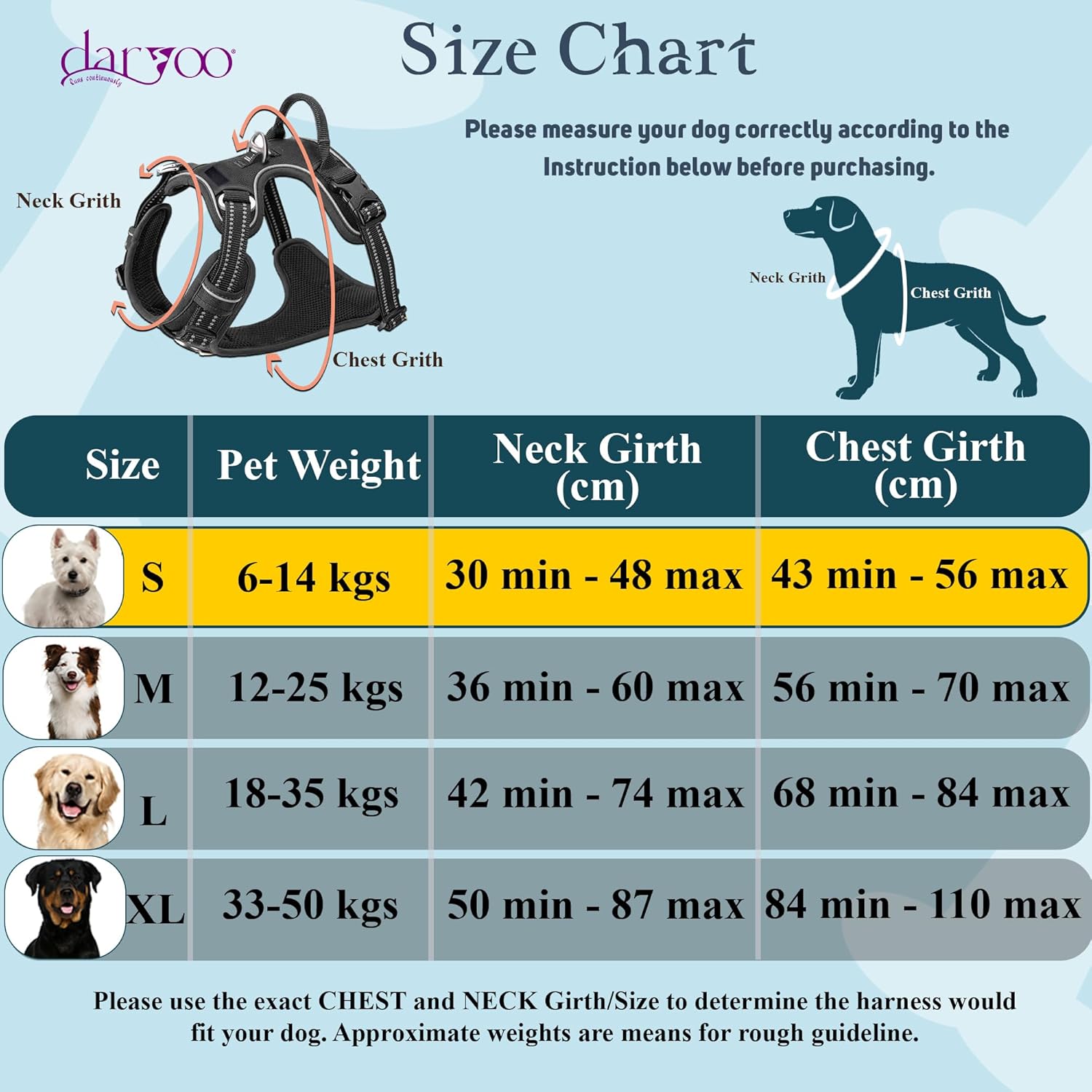 Daryoo – Secure & Stylish – Dog Harness Featuring Belted Security – Crafted in Comfortable Oxford Fabric with Night Reflective Detailing (Small, Black)