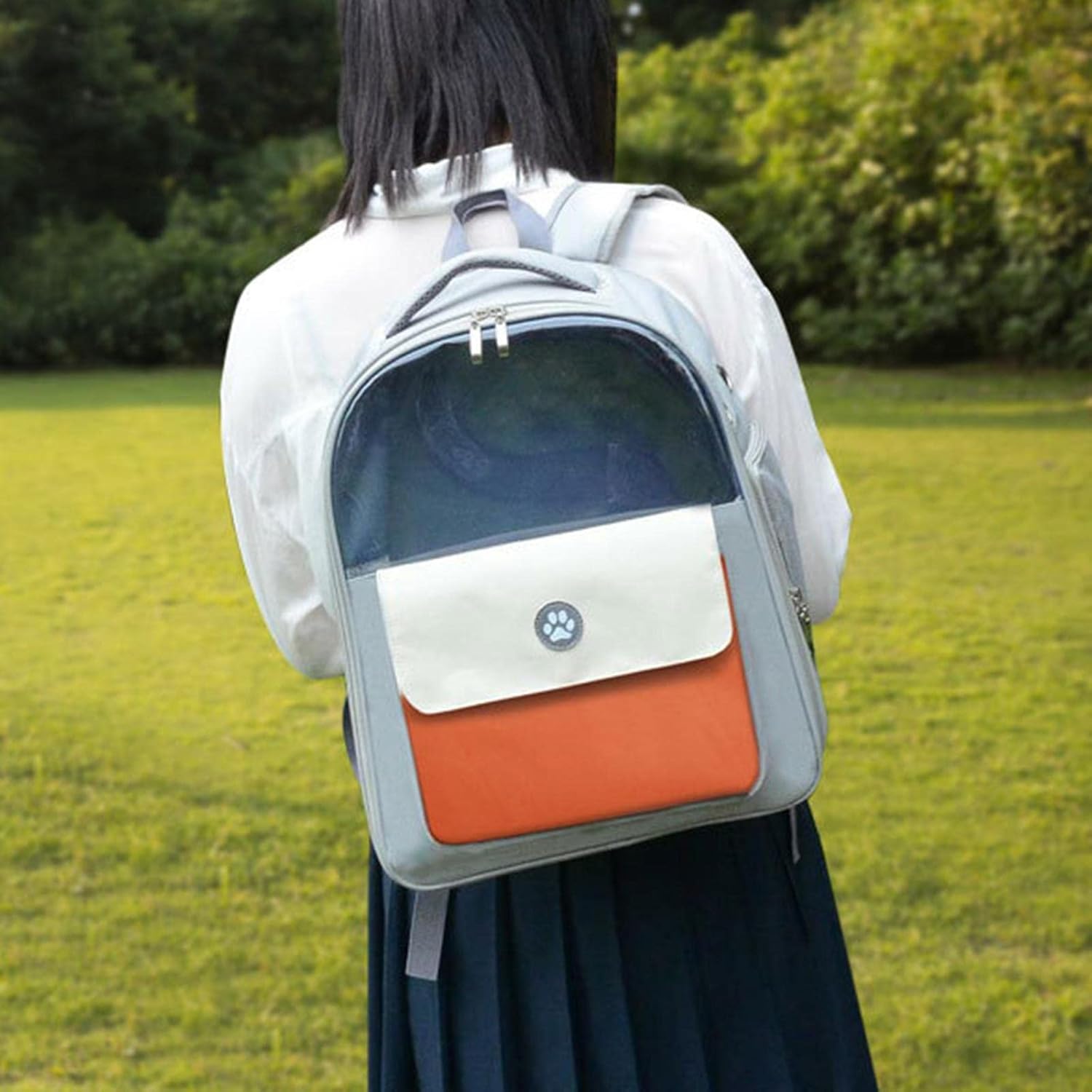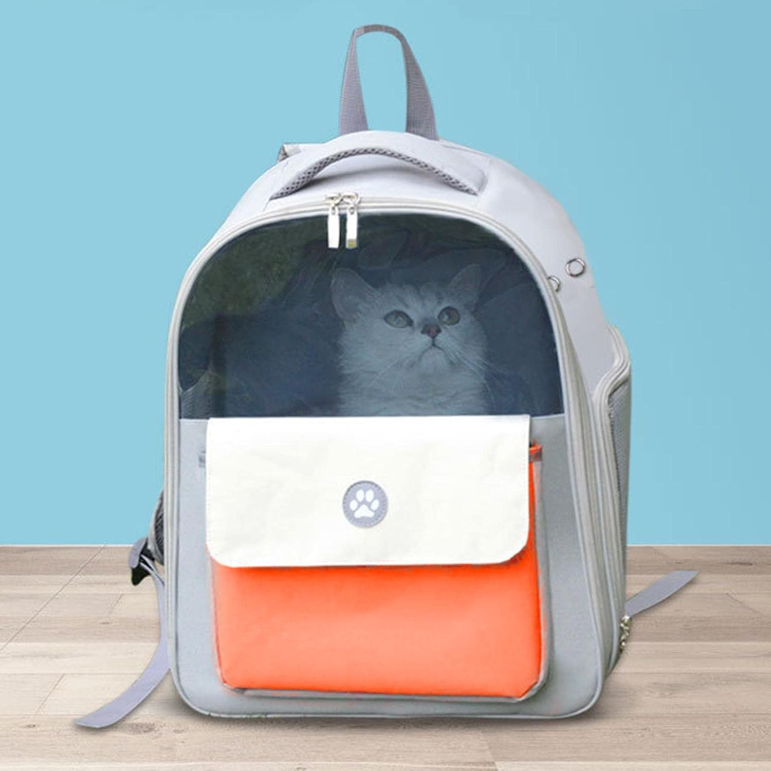 Enakshi Cat Carrier Backpack Clear Window Outdoor Oxford Fabric Bag Orange