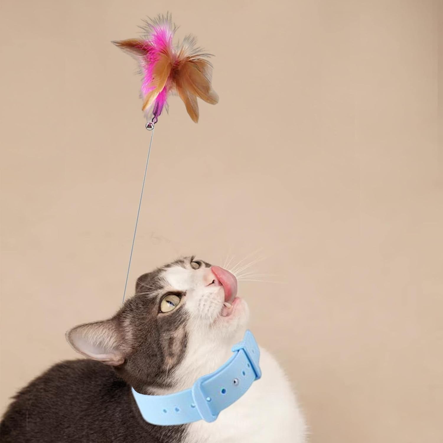 Cat Teasing Wand: The sound of the bell and the feather designed will assist your cat keep feather teaser with collar for cats to put on.