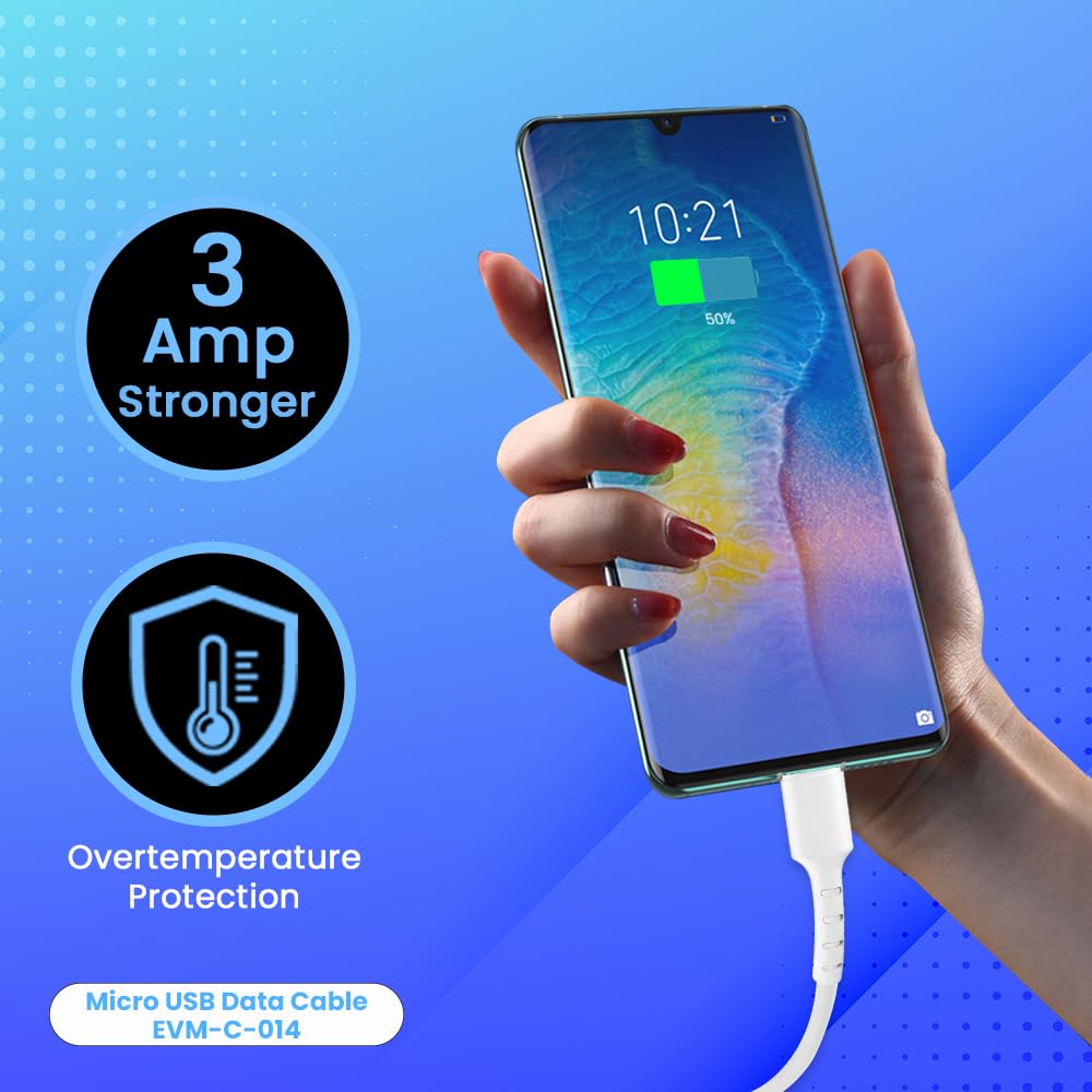EVM USB to Micro USB Data & Sync Cable (1 Meter, 3 Amp) | Strong & Durable | High-Speed Charging | Compatible with Multiple Devices | 1 Year Warranty (EVM-C-014-White)