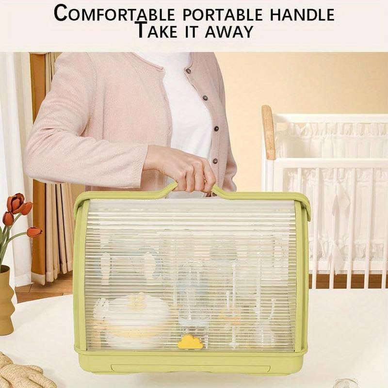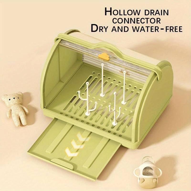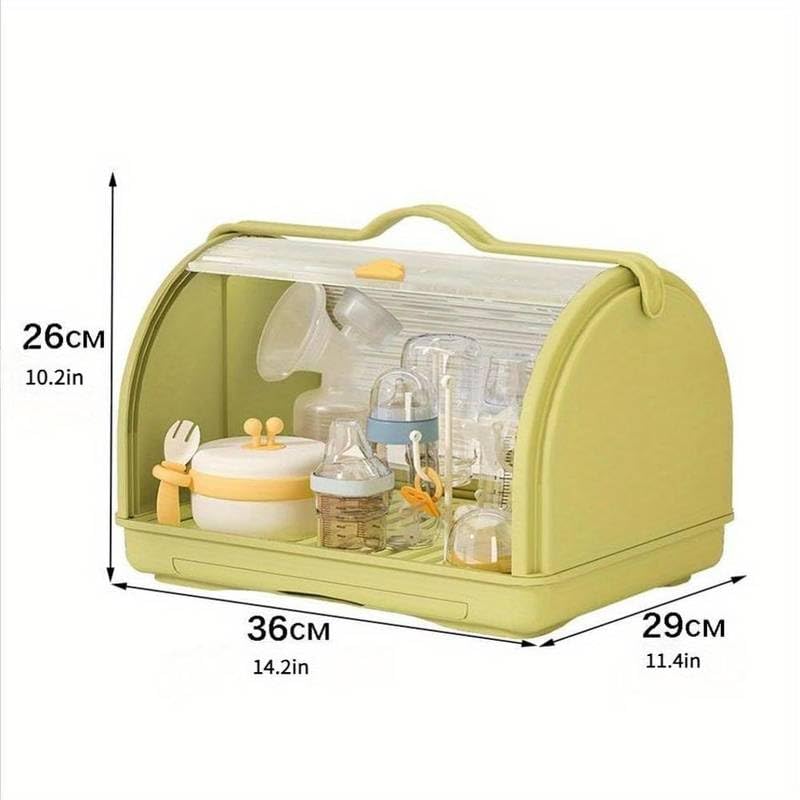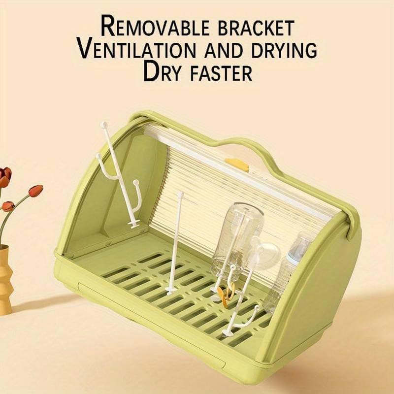 EVVIX Milk Bottle Storage Box, Baby Bottle Drying Rack Storage, Baby Drying Rack with Cover, Portable Drying Rack for Baby Bottles, Bottle Drying Rack Space Saving (Green)