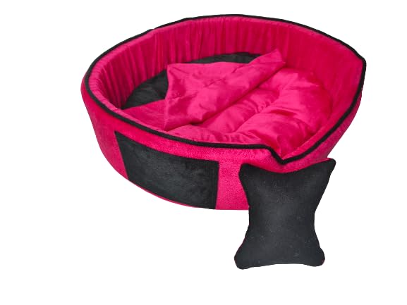 Expecting Smile Reversible Super Soft Premium Fluffy Cushion with Blanket Velvet Sofa Shape Dog Cat Pet Bed, Soft and Comfortable Pink Black 2