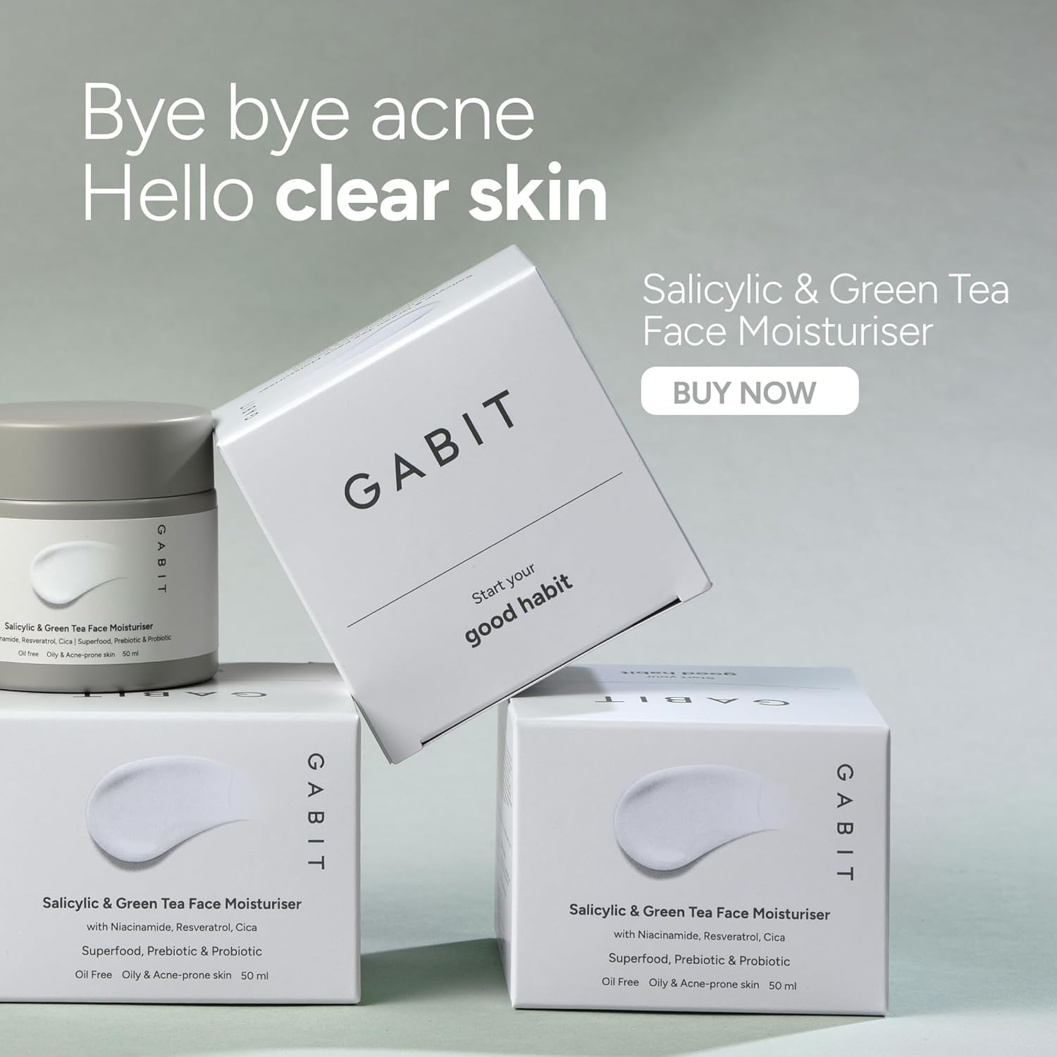 Gabit Salicylic & Inexperienced Tea Face Moisturiser for Oily & Pimples-prone pores and skin. A each day use water gel based mostly moisturiser that helps scale back zits, calms redness & irritation, and evens pores and skin tone.