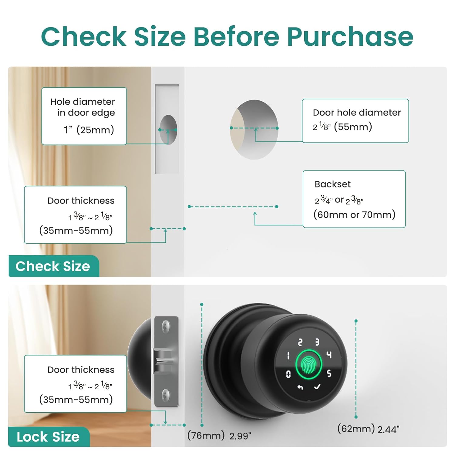 【4-IN-1 Unlock Methods】Ghome Good door knob constructed with 4 unlock means, together with fingerprint unlock, password unlock, App management(works with Good Life/Tuya App), bodily keys unlock to fulfill your variety wants. Nice for bed room, front room, closet room, workplace, house, and so on. Mannequin quantity is K02APRO