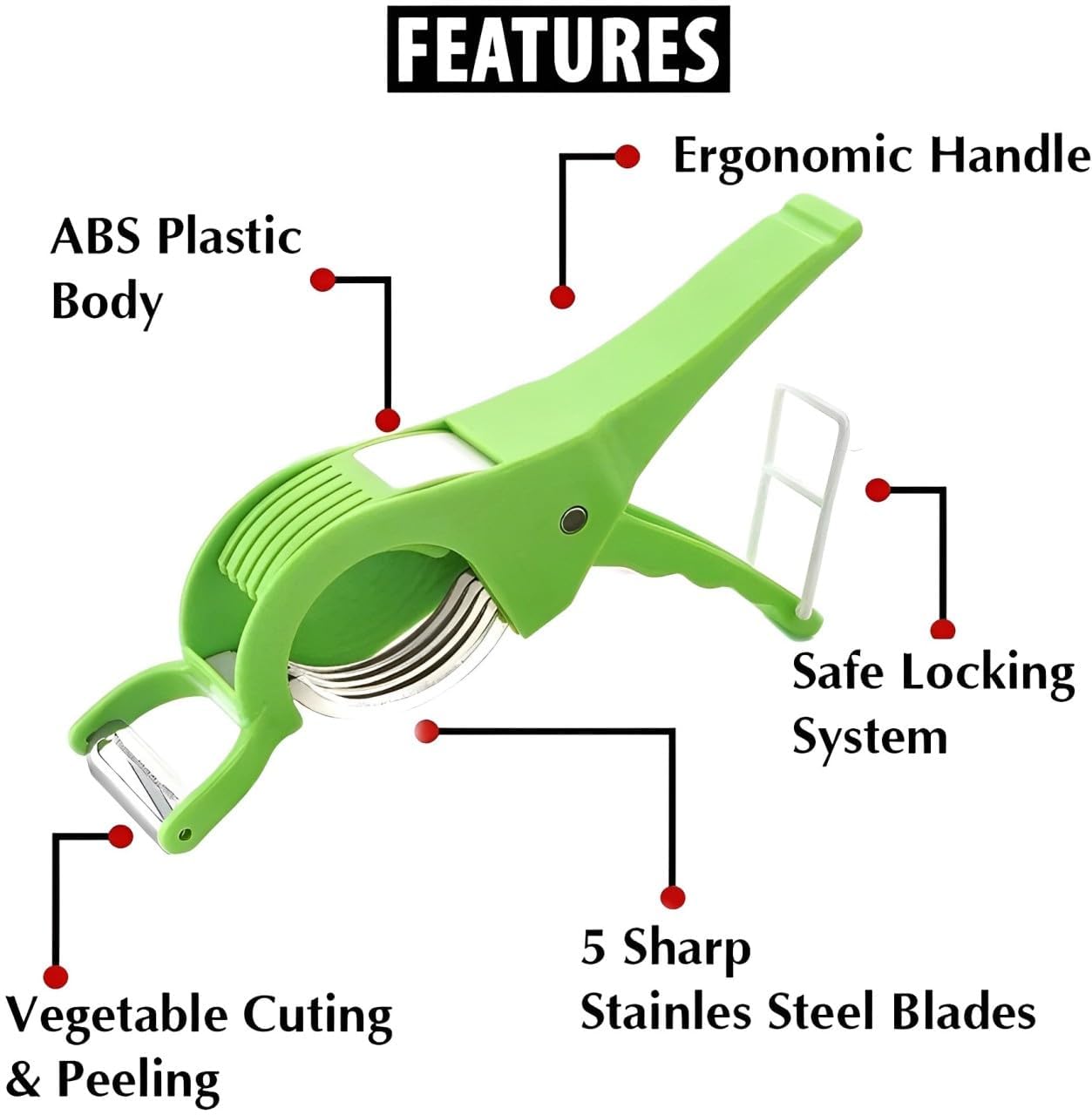 2 in 1 Vegetable & Fruit Multi Cutter & Peeler is a flexible kitchen instrument that simplifies meals preparation. Its sharp stainless-steel blades effortlessly slice and cube greens and fruits with precision. The 5-blade design permits you to create uniform cuts, saving effort and time. The built-in peeler permits you to peel fruits and veggies with ease. This multi-colour cutter is a must have for any Indian kitchen, making meal prep a breeze. Crafted with sturdy supplies, it ensures long-lasting efficiency. Deliver effectivity and comfort to your culinary adventures with this useful multi-cutter and peeler.