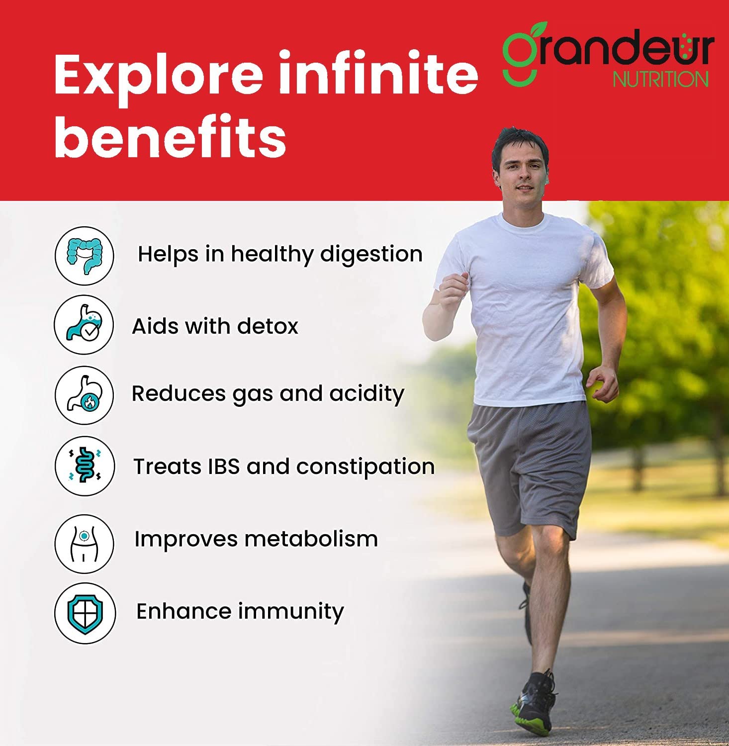 MANY HEALTH BENEFITS : Grandeur Tummy Fizz prebiotic + probiotic 20 billion CFU helps in sustaining good intestine well being, enhances immunity, helps in IBS and constipation, helps increase metabolism and digestion, promotes development of excellent micro organism.