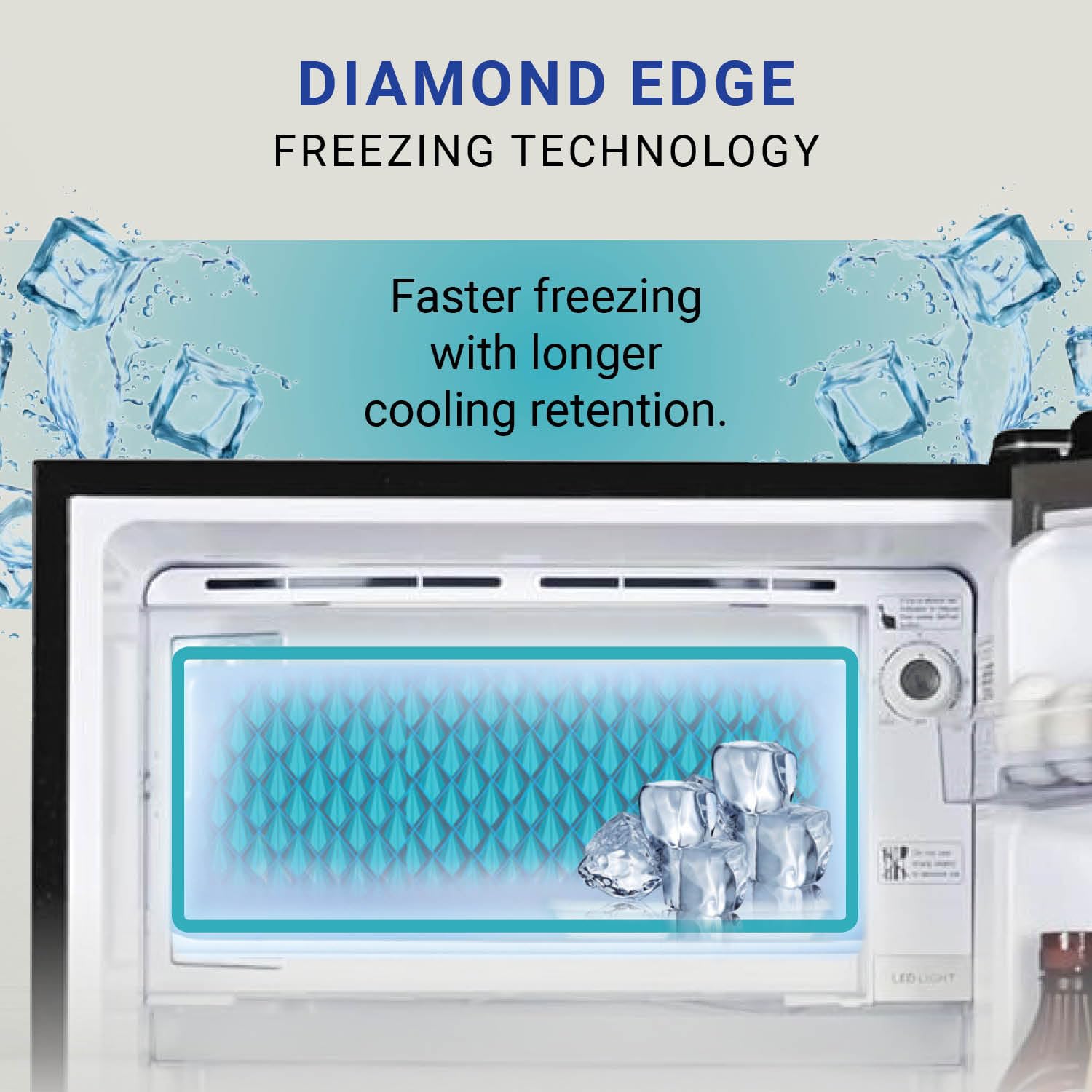 Diamond Freezing Know-how with DEFT- the fridge is ready to present higher cooling retention within the freezer. The uniquely designed internal edges of the fridge in a diamond form decelerate the method of ice melting whereas additional prolonging the cooling retention even throughout energy outages.