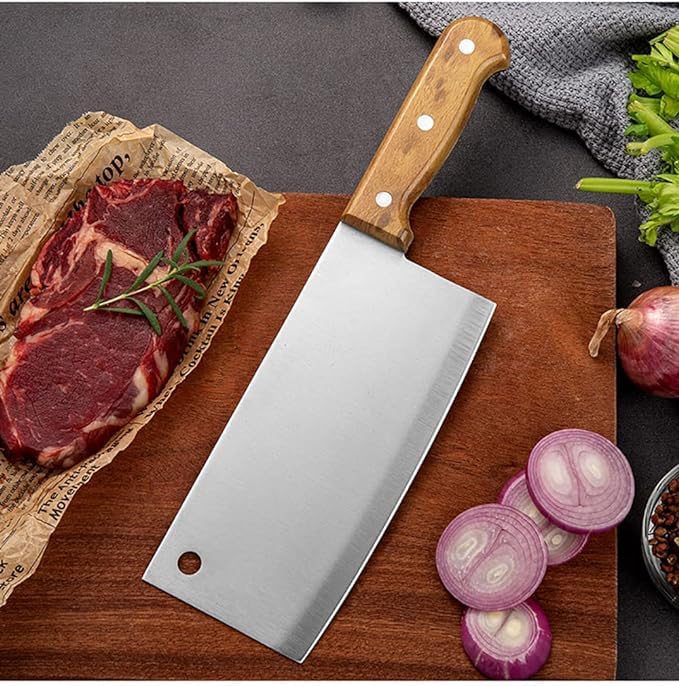 Skilled Meat CleaversEveryday meat, fruit or vegetable cutter, gentle and dexterous, appropriate for slicing meat, greens, slicing small onions, and many others.Nicely-designed kitchen knifeThe knife blade is product of high quality German stainless-steel with a Rockwell hardness of 56-58 with a hand polished edge at 12-16 levels on all sides. Expertly crafted with a tapered stainless-steel edge that cuts with ease and effectivity.Ergonomically designed handlePakka wooden deal with for a sturdy but balanced and cozy grip. Each curve and angle of the deal with is ergonomically designed for a cushty two-handed grip. The form of the blade additionally provides you minimal slicing resistance. Most significantly, you’ll be able to get pleasure from cooking once more.Person-friendly and Ergonomic:The burden and dimension of the knife feels fairly balanced and a consumer will not really feel slowed down due to its weight. that reduce the potential of experiencing aches and cramps on the finger particularly after lengthy use