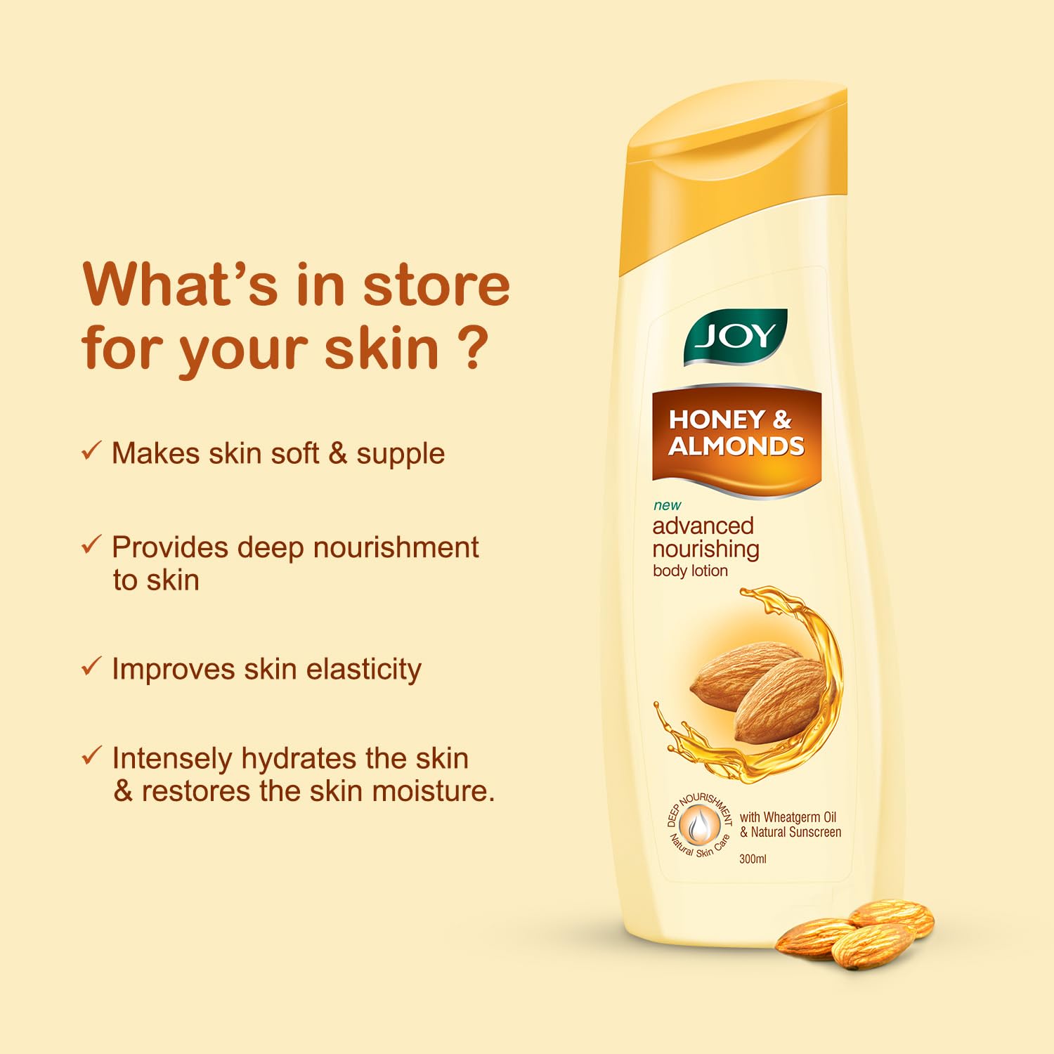 Expertise the facility of Pleasure Honey & Almonds Superior Nourishing Physique Lotion, enriched with Almond Oil, Honey, Vitamin E, and Aloe Vera for final nourishment.