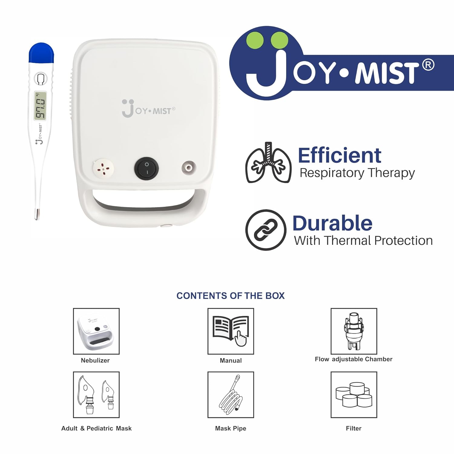 JOYMIST Advance Nebulizer Compressor With Thermomter 360° Degree Nebulization Kit For Child and Adults