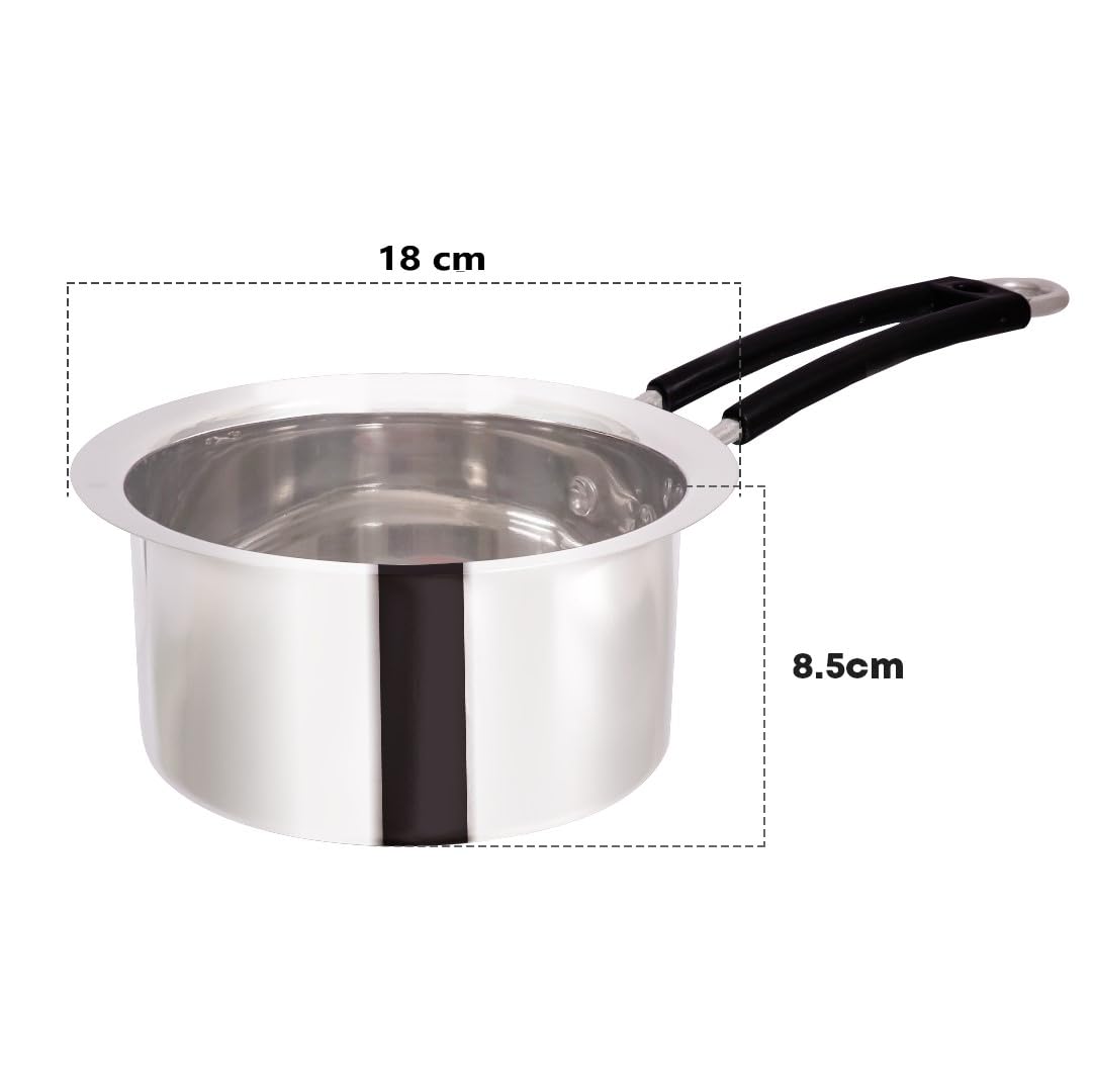 KC Stainless Steel Sauce Pan | Milk Pan | Stove & Induction Safe | Heat Surround Cooking | Easy Grip Handles | Capacity 1.5 LTR | Diamm. 18 Cm