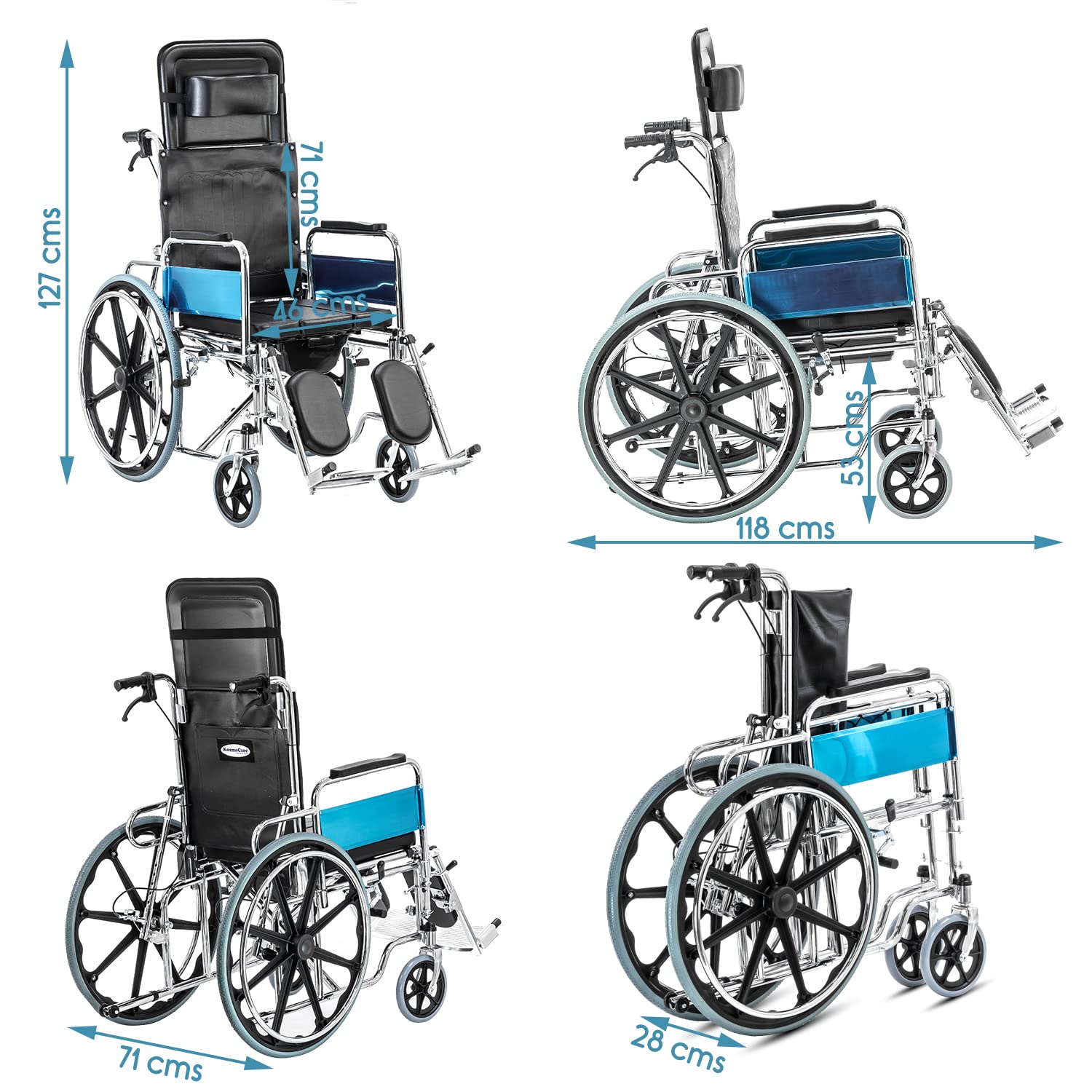 KosmoCare Recliner cum Commode wheelchair | Foldable Wheelchair | Wheel chairs for old people | Recliner Wheel chair with Detachable Cushion Seat for extra comfort |