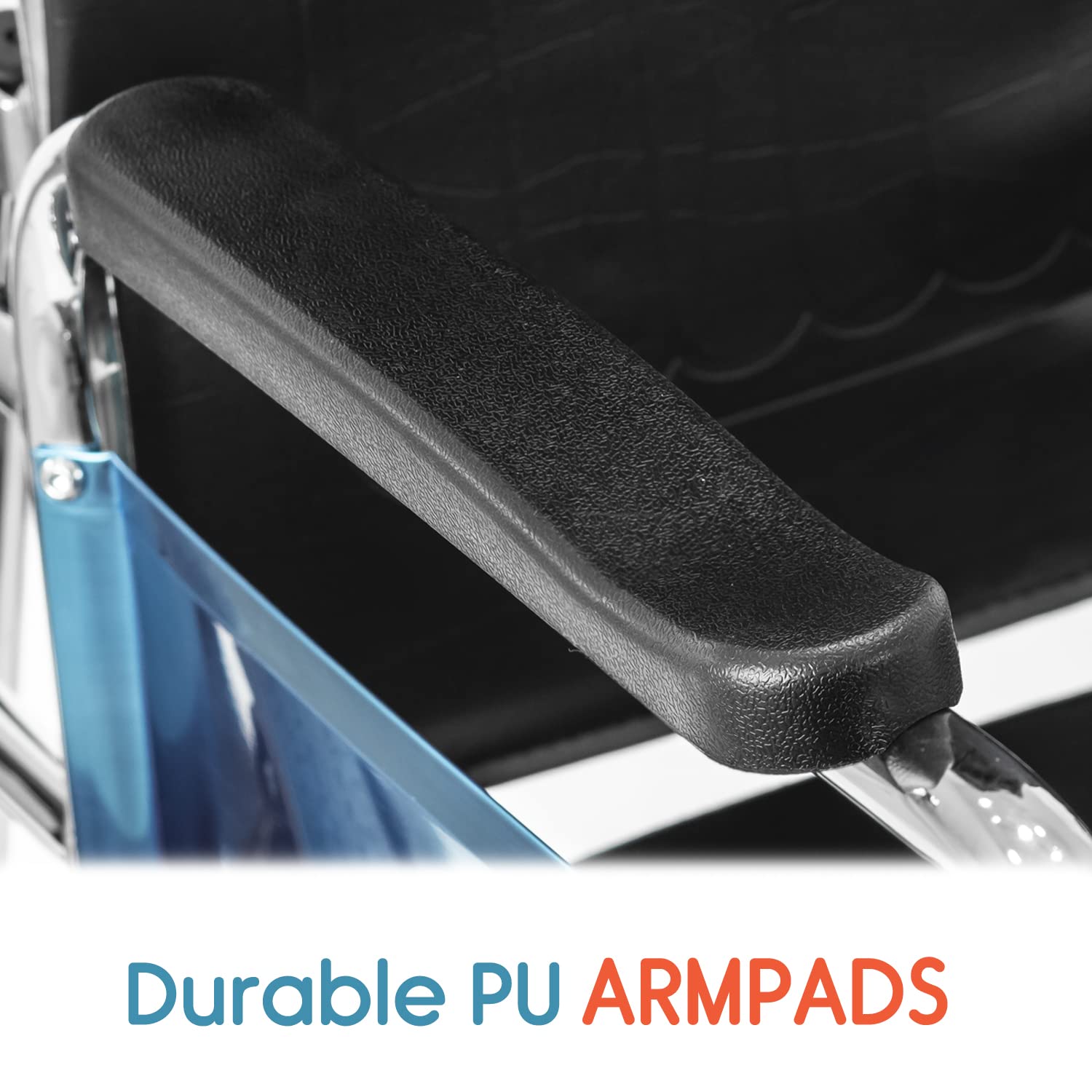 ERGONOMICALLY FOLDING DESIGN: The folding wheelchair can folds flat for handy storage and journey. Our folding wheelchair for previous individuals make unbiased mobility straightforward through specialised options like waterproof PU armrests, storage pocket, anti-tippers and so forth.