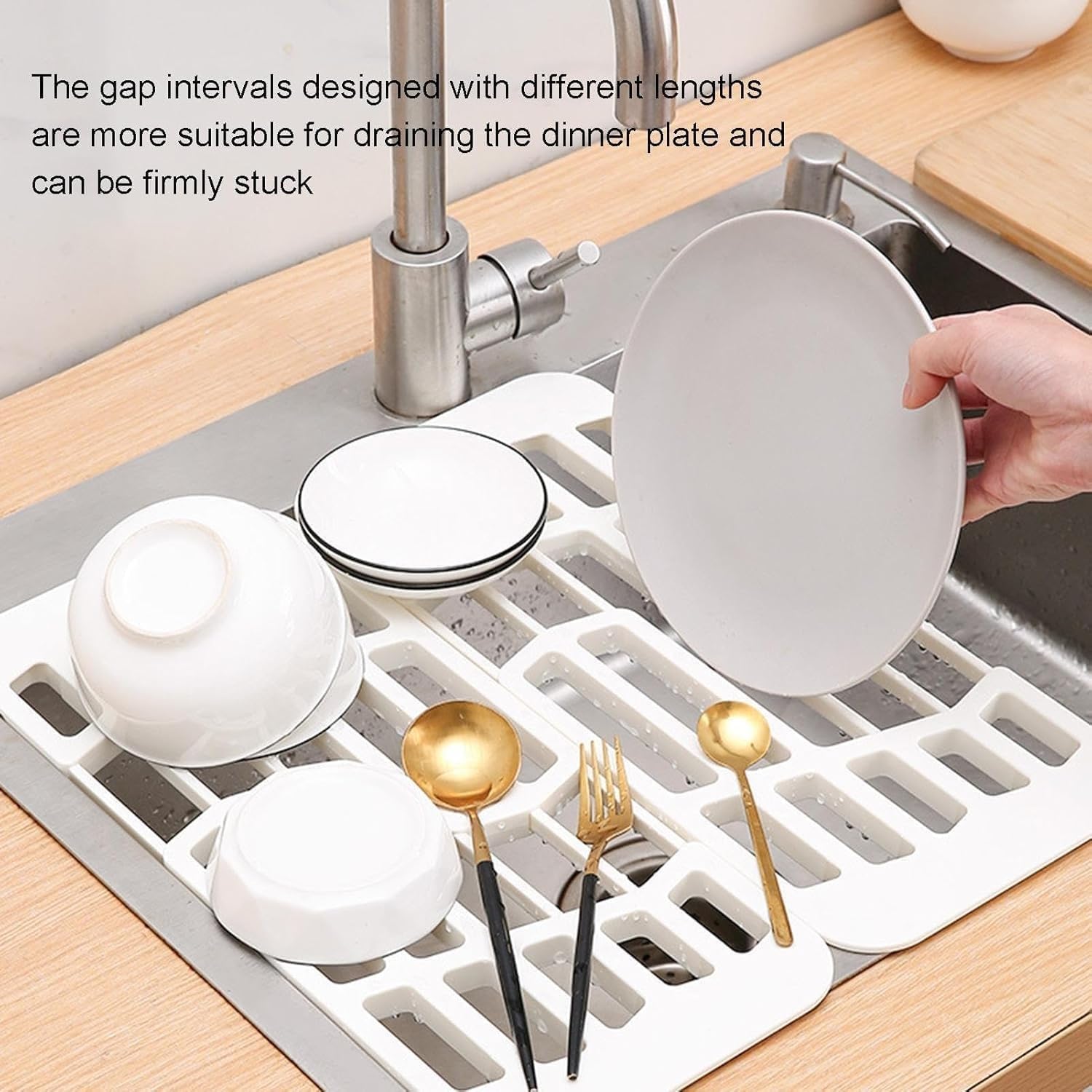 With its retractable design, our telescopic drain rack is ideal for many sinks.