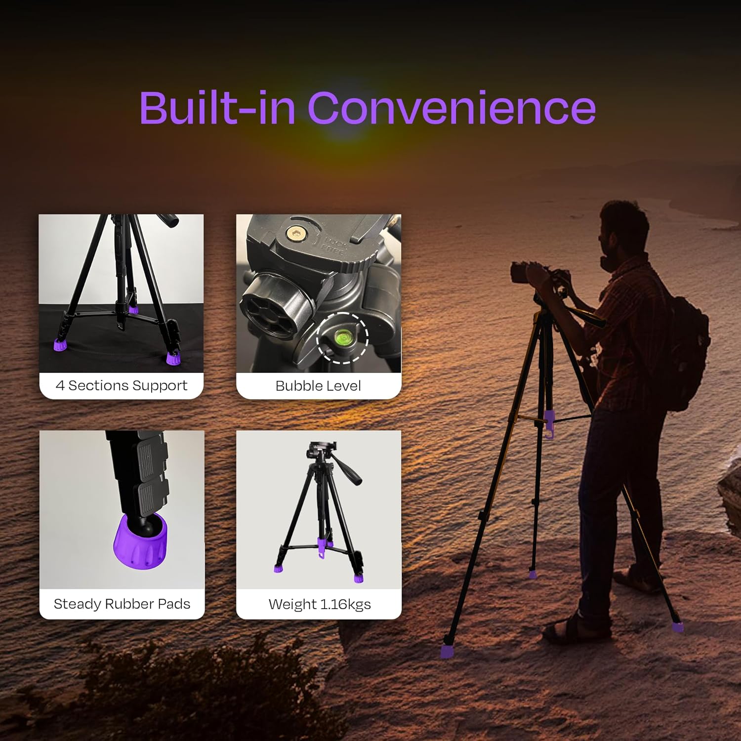 Constructed-in bubble degree, collapsible deal with, weight hook, extendable heart column for easy use.