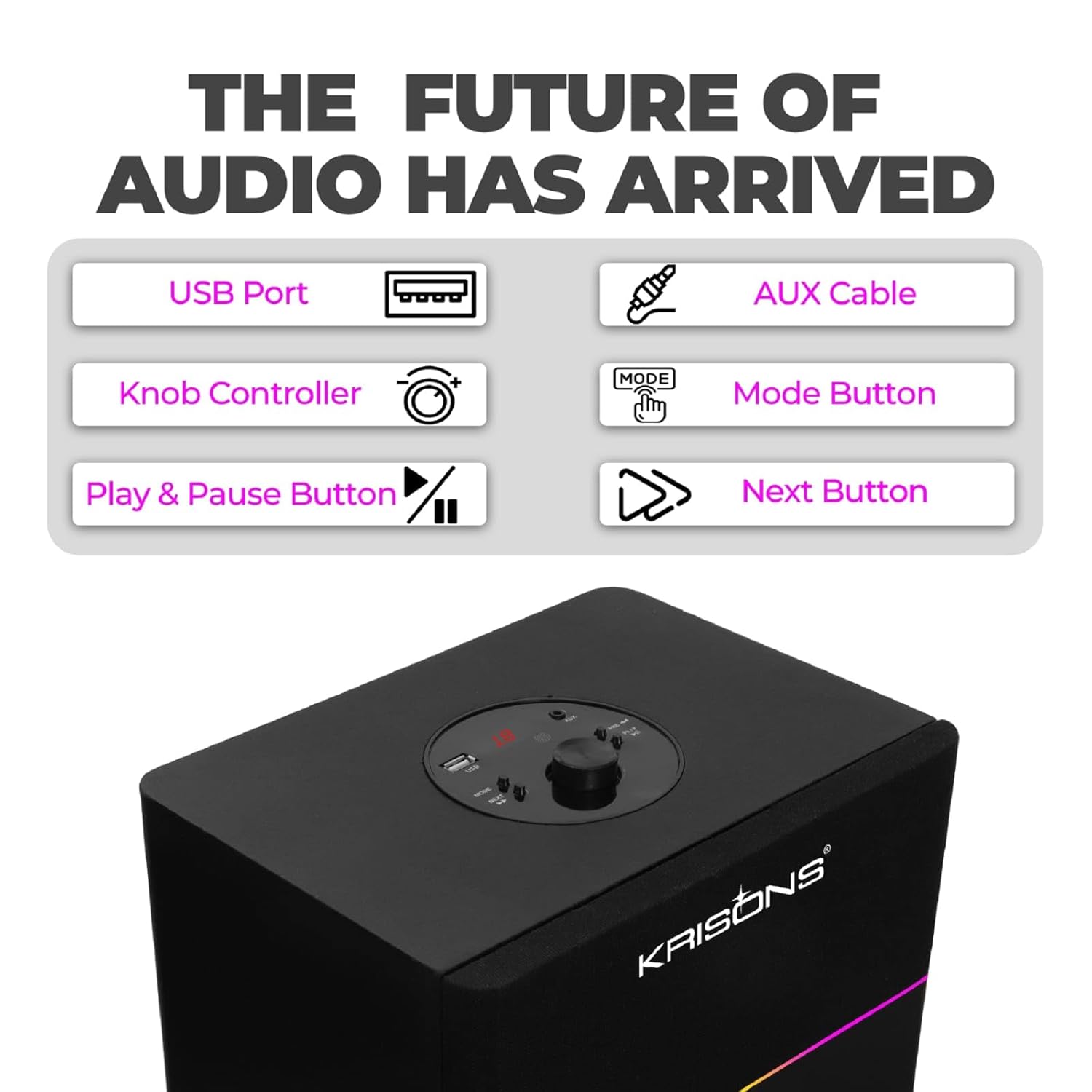 KRISONS Newly Launched Rocker Powerful 120W RMS Home Theater Bluetooth Party Box Speaker with High Power Bass, Wireless Mic with Karaoke & Mic Priority, HDMI (ARC), AUX, USB and Dynamic LED Lights