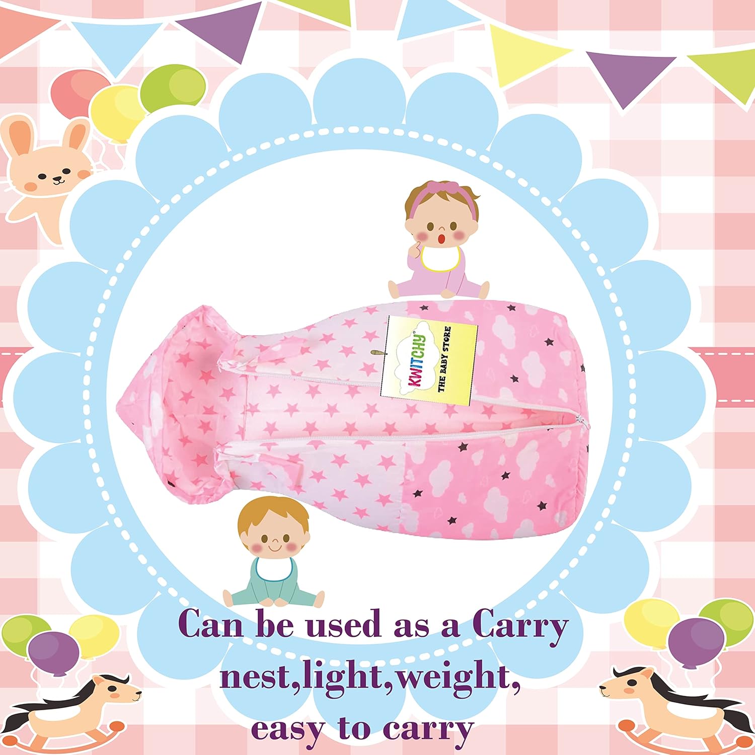 Kwitchy child service nests sleeping bag is designed for simple portability. This sleeping bag include a hood and a straightforward entry zipper which make for a hassle-free journey expertise for each the mama and the newborn. This carry bag ensures that the newborn is roofed from head to toe, maintaining child heat always.