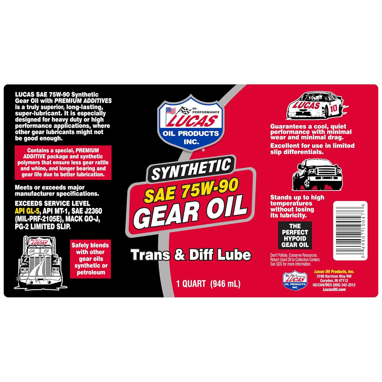 Lucas Oil 10047 SAE 75W-90 Synthetic Transmission and Differential Lube – 1 Quart
