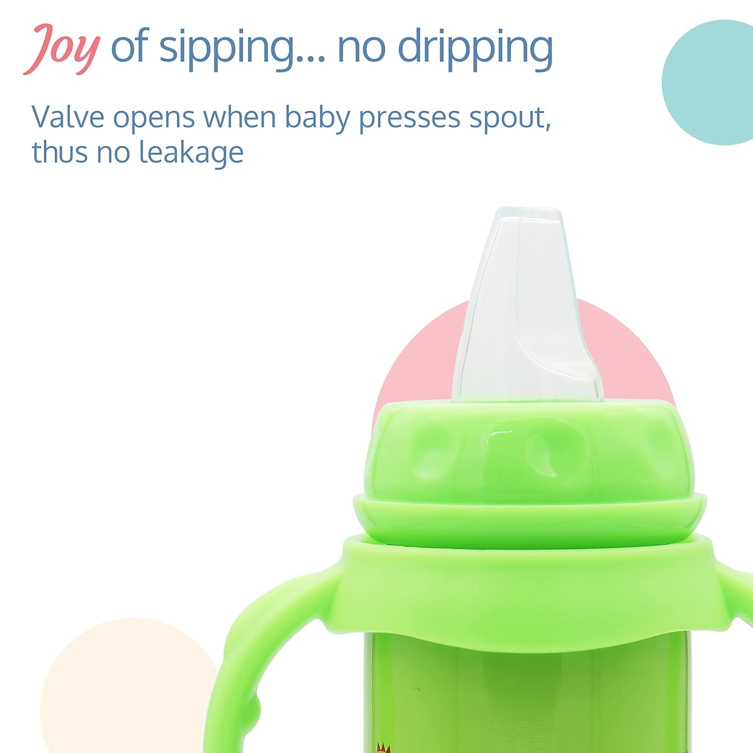 The slim neck nipple with rounded grooves aids pure like latch on, the Spout helps in self hydration and weighted straw helps in transition from Spout to straw sipper