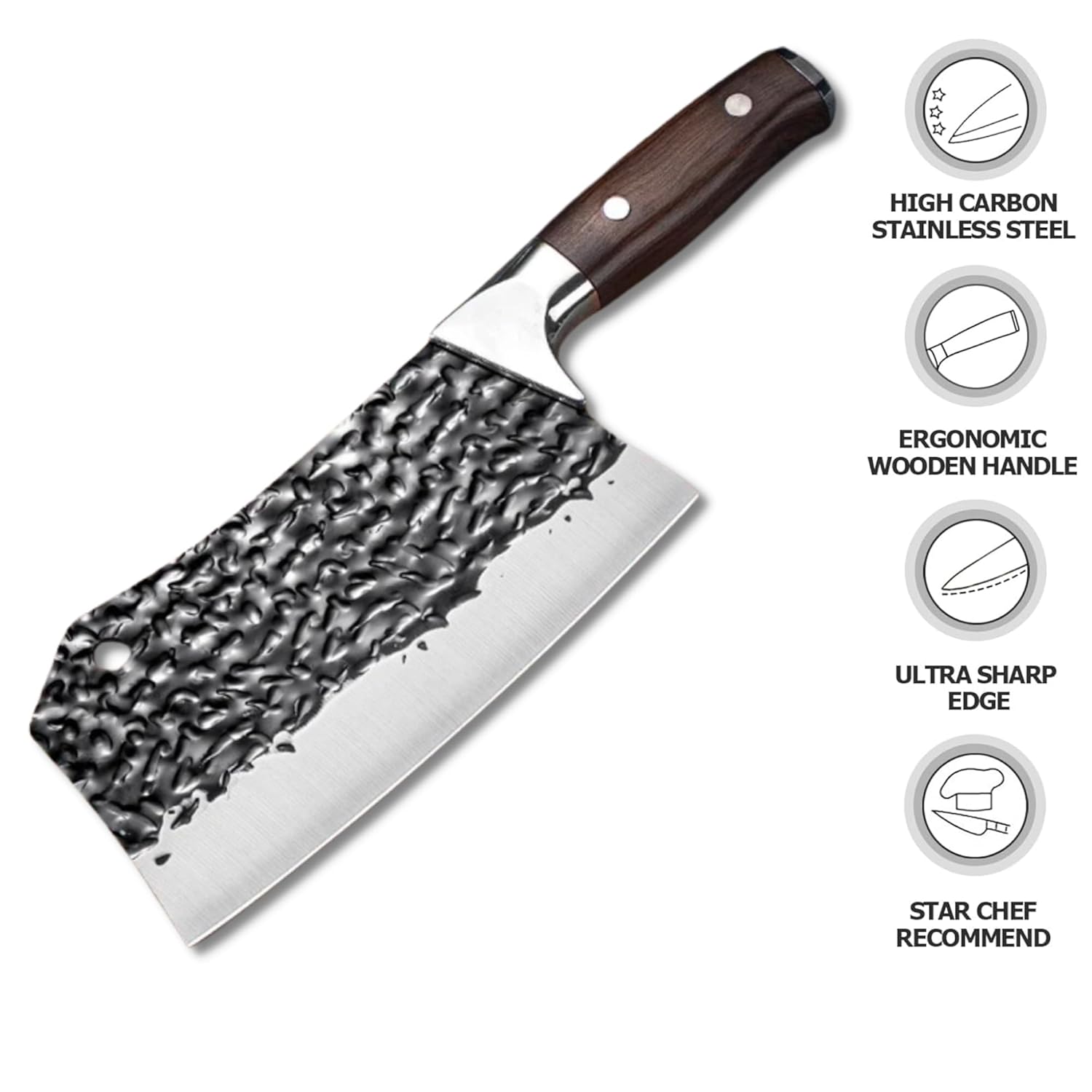 Triple rivets & Full-tang with its ergonomic curved design to maximise sturdiness and stress tolerance. Ergonomic knife deal with that completely suits any hand form, designed by probably the most skilled designers. Whether or not you utilize it left-handed or right-handed, whether or not your hand is large or small, holding this knife, you’ll be able to really feel the smoothness and luxury that you’ve by no means felt earlier than!