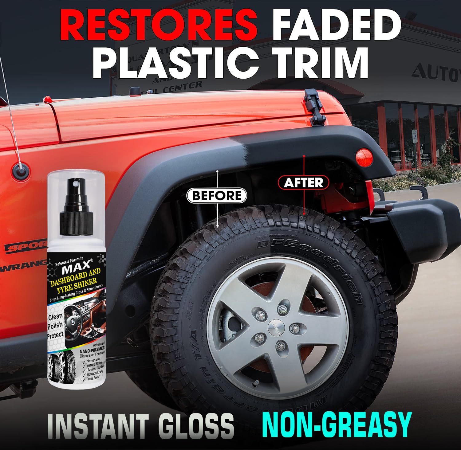 3. MAX Liquid Wax Polish 200 ML – for Lengthy Lasting Excessive Gloss and Paint Safety by Carnauba Wax Coating, 4. MAX Dashboard & Tyre Shiner 200 ML – for Lengthy Lasting and Shiny Look