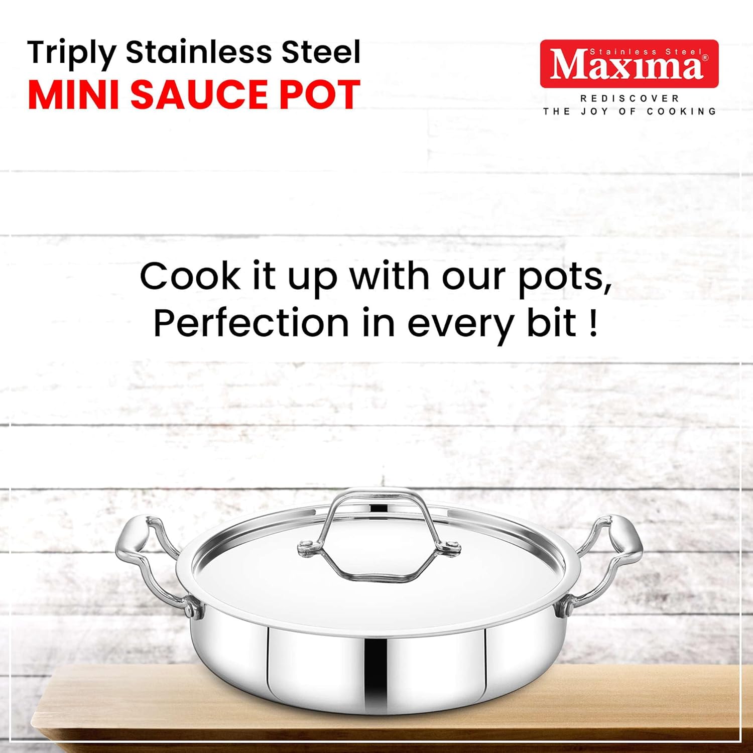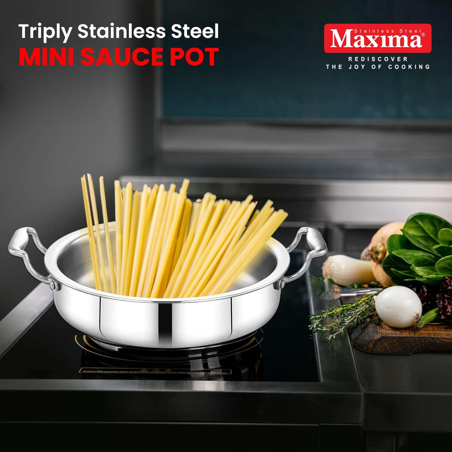 Versatile Cooking Companion: Maxima’s Triply Mini Sauce Pot is ideal for sauces and gravies, making small cooking duties a breeze with its compact design and environment friendly heating.