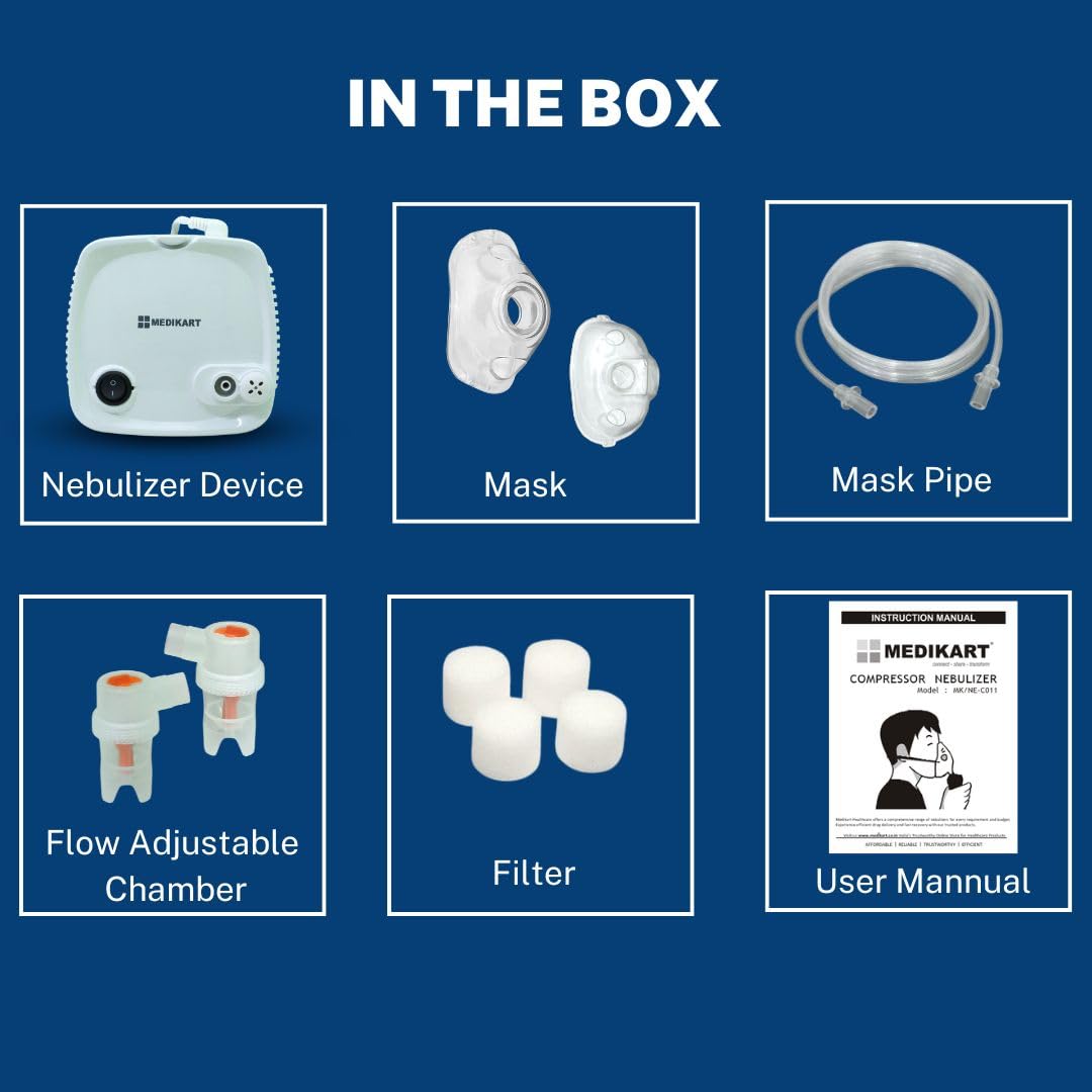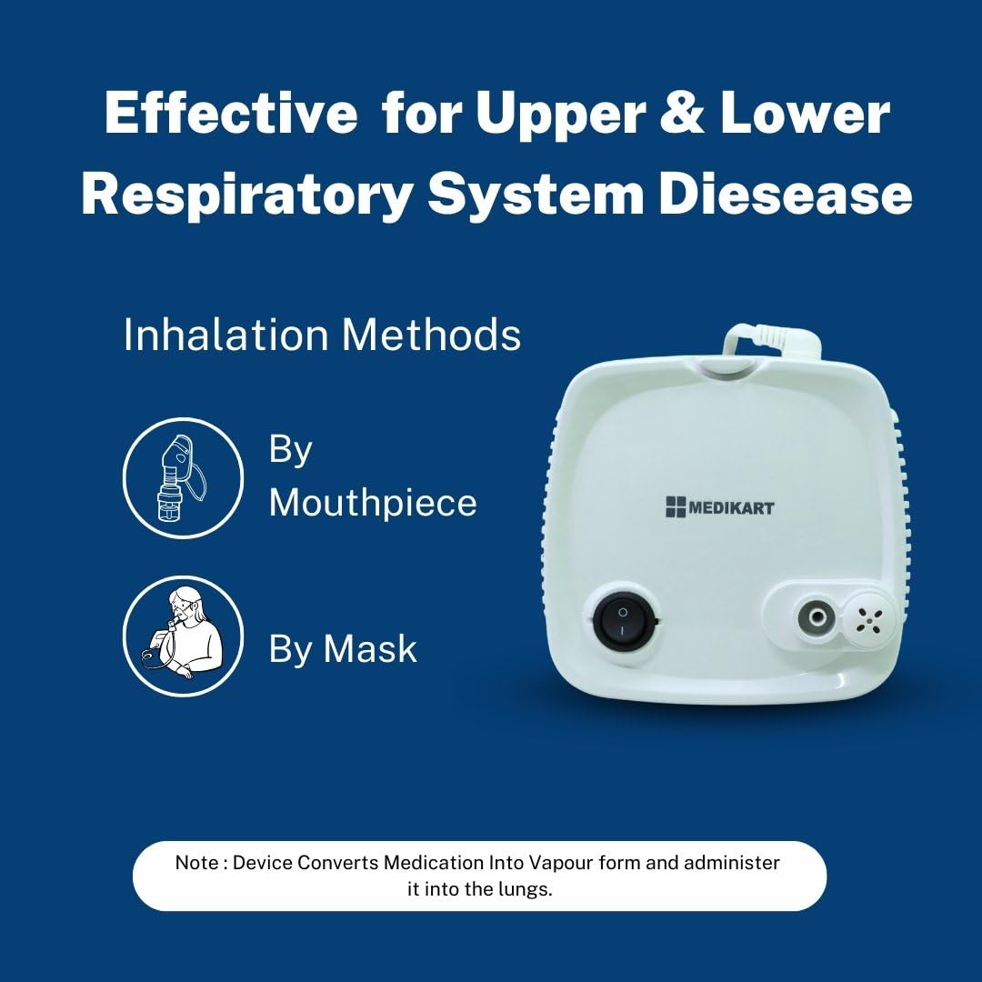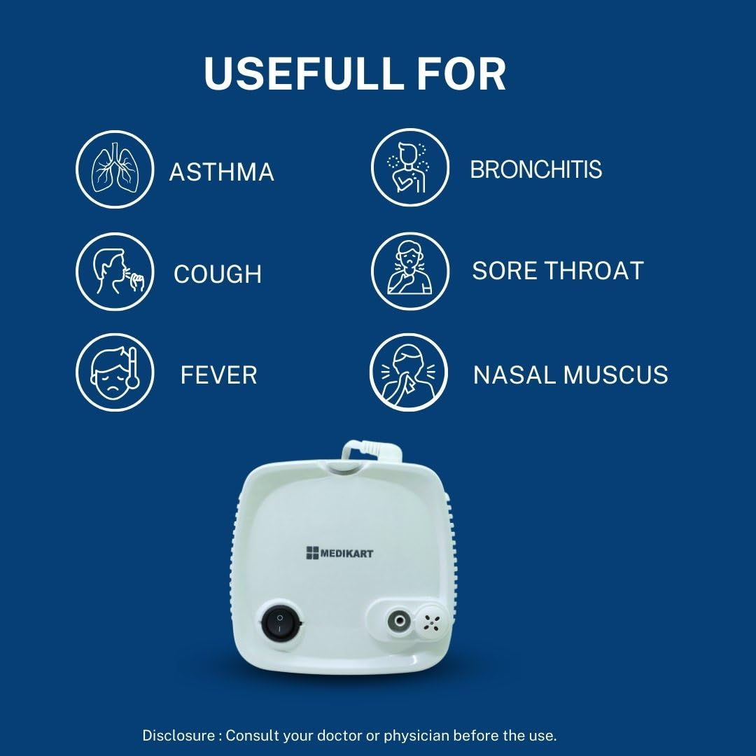 Medikart MK-NEC-011 Compressor Nebulizer Machine For Child & Adult With 1 year Repleacement Warranty (White)