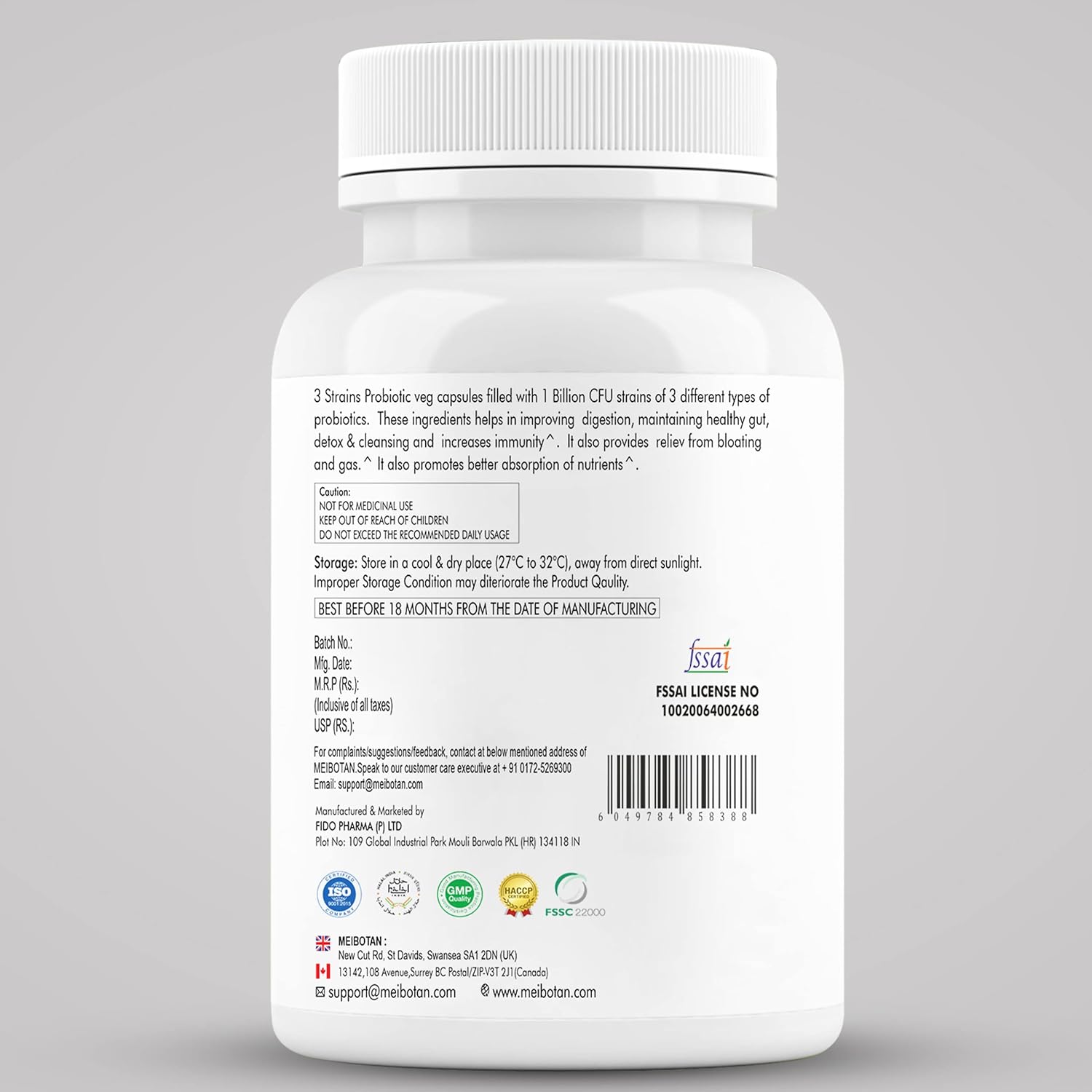 3 Strains 1 Billion CFU Probiotics capsule is crammed with elements which assist in bettering digestion, wholesome intestine and will increase immunity.