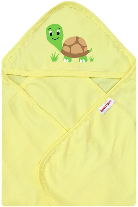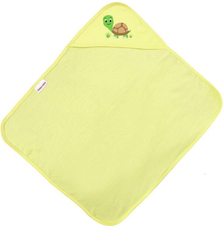 MIYA Cotton Embroidered Print Double Layer – 160 GSM Hooded Bath Towel Set for Baby Boys & Girls | Super Soft, Breathable Towel (Pack of 2)(Canary Yellow)