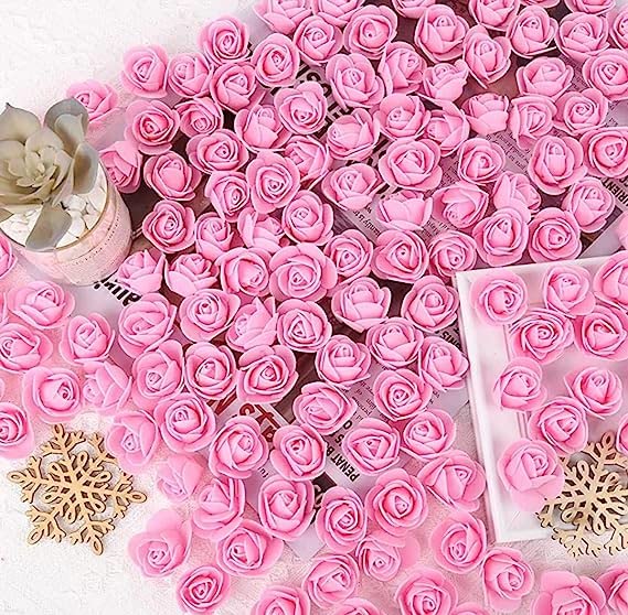 MRB 50 pcs Artificial Foam Flowers Fake Foam Water Floating Flowers for Pooja Thali, Festival and Events, Home, Table, Badroom, Pooja Room, Diwali Decoration Items and DIY Craft (Pink, Pack of -50)