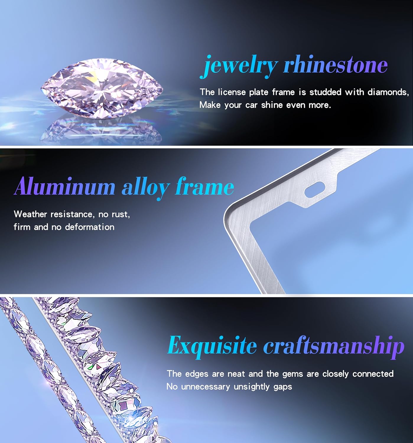 💎 STRONG AND DURABLE – The bling license plate frames 2 pack is made from thick chrome steel, sturdy and won’t rust. The glitter license plate body is encrusted with glowing glass rhinestones for a shiny and splendid look. The colour will not fade or peel off whenever you wash your automobile. Excellent corrosion resistance and excessive hardness extends the lifetime of the diamond license plate body.