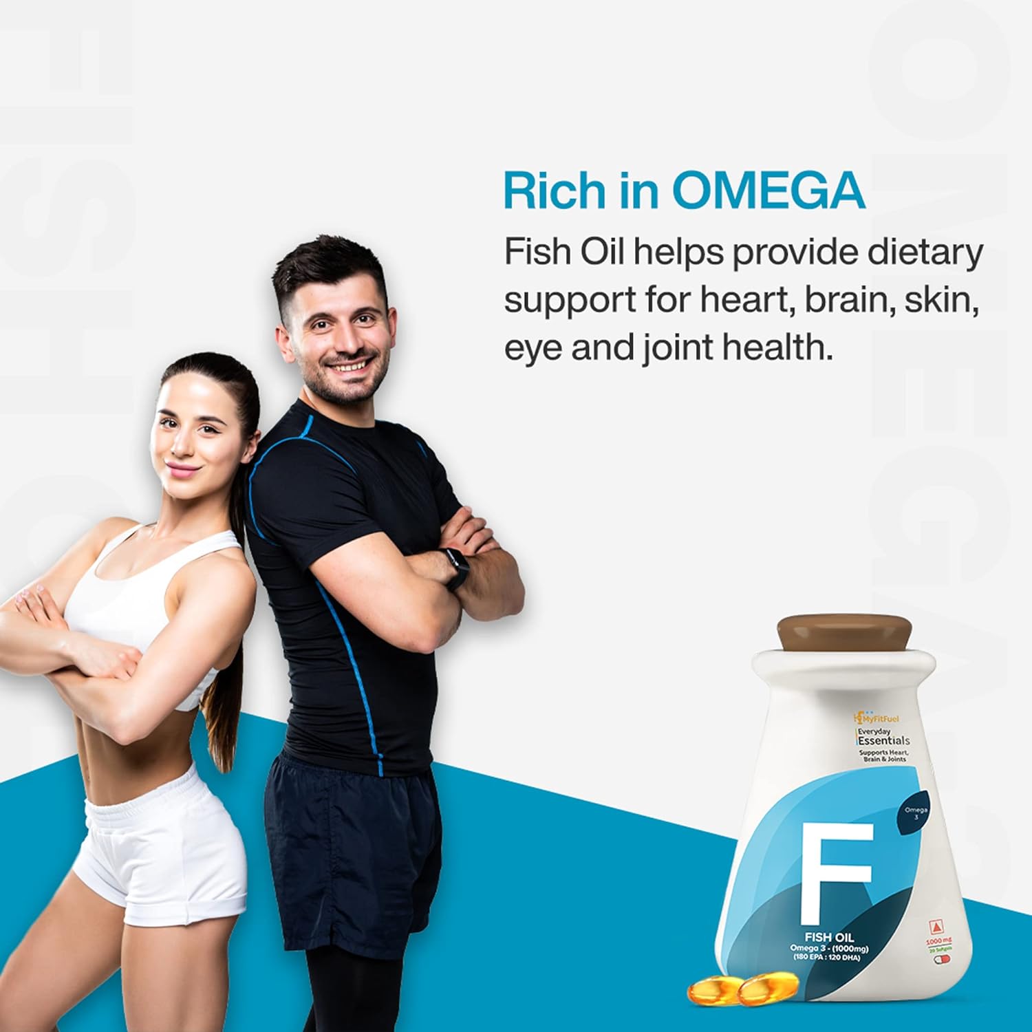 Pure 1000mg Omega 3 for Wholesome Joint, Coronary heart, Pores and skin & Mind. Every Softgel comprises 180 EPA: 120 DHA, 2 Delicate gels comprise 360 EPA: 240 DHA