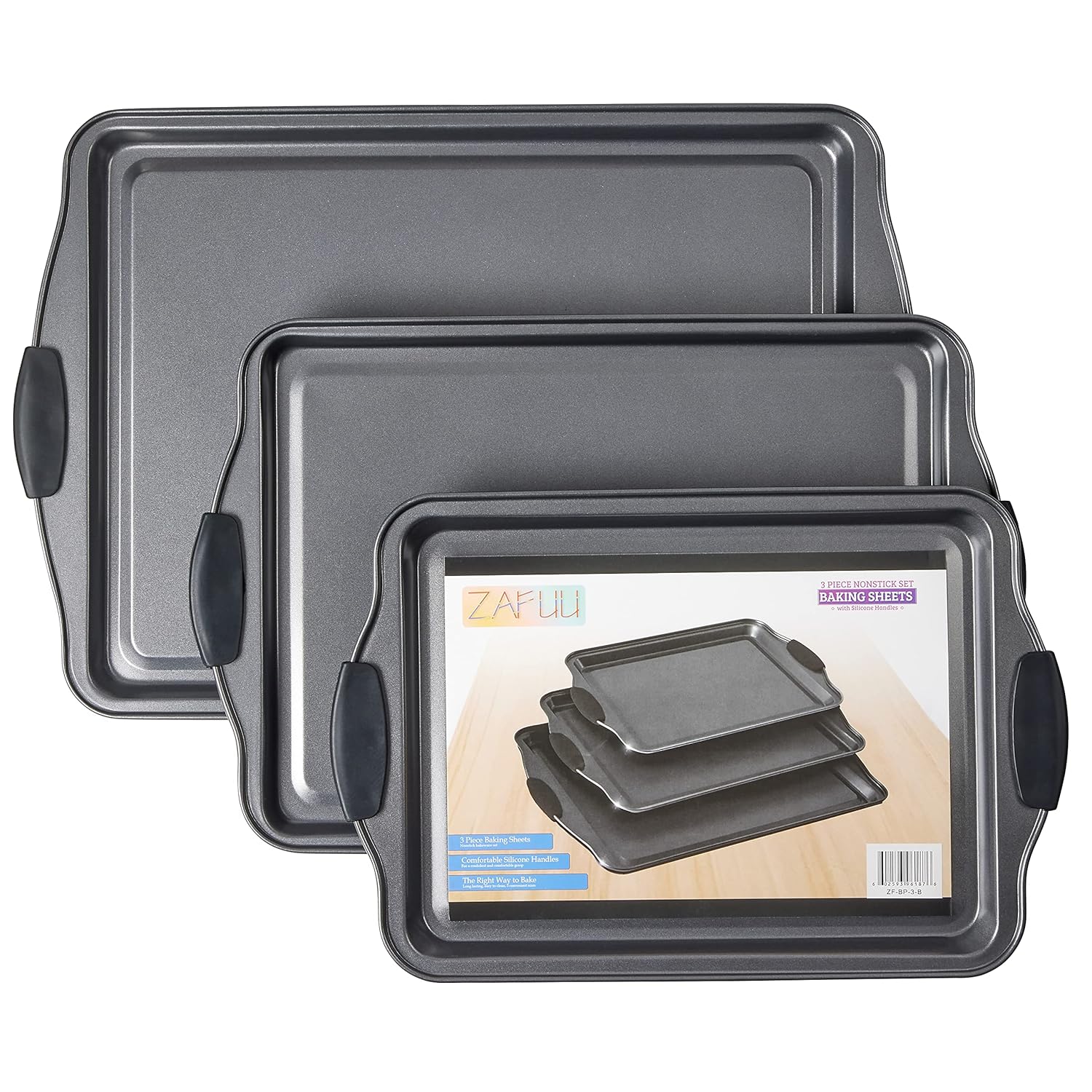 Non-Stick Baking Sheet Set 3 Pcs for Cookies & More, Heavy-Duty Aluminum Baking Sheets with Black Silicone Handles