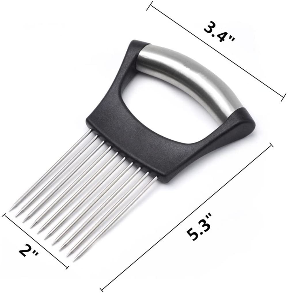 The Fincy Palmoo Stainless Metal Onion Holder helps you create even slices of any laborious vegetable with out having to the touch it along with your fingers. Merely information your knife between the evenly spaced spikes and slice away.Snug deal with gives you with a safe non-slip grip.Sturdy and Good Look. Dishwasher Protected, mild in weight, everybody can use it for cooking.